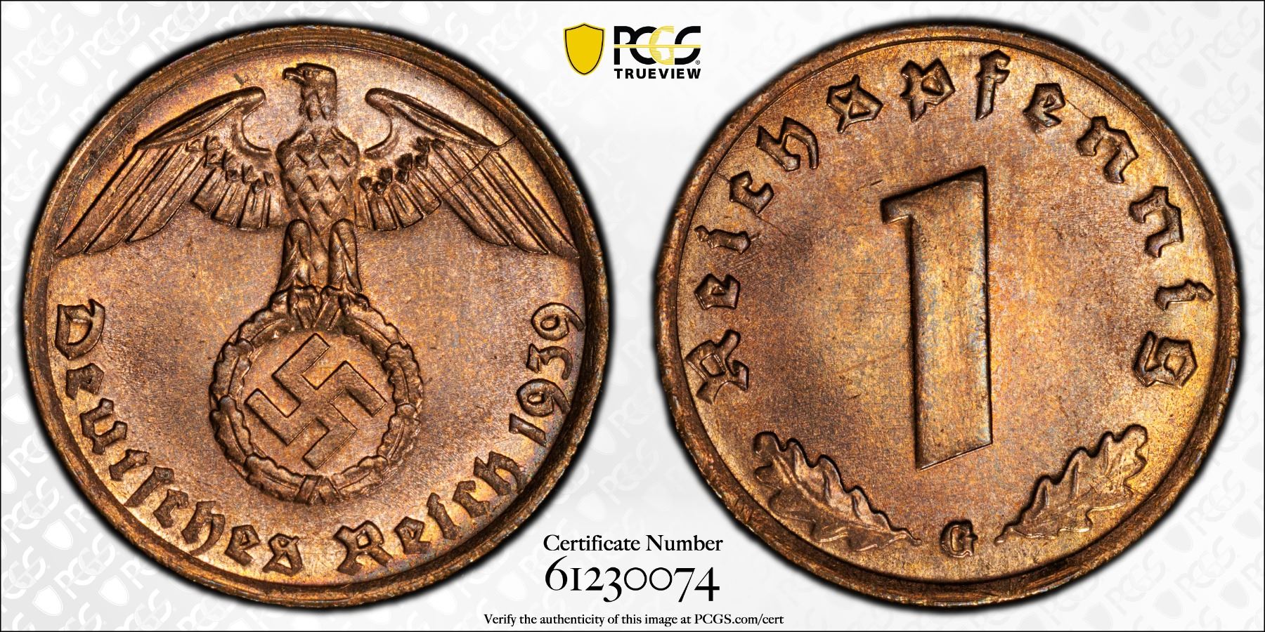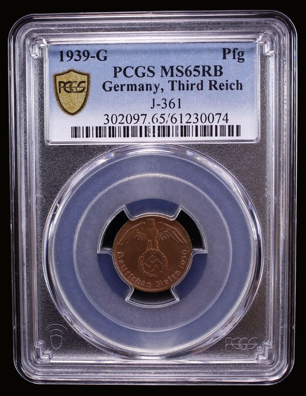 GERMANY: Third Reich, AE reichspfennig, 1939-G, PCGS MS65 RB