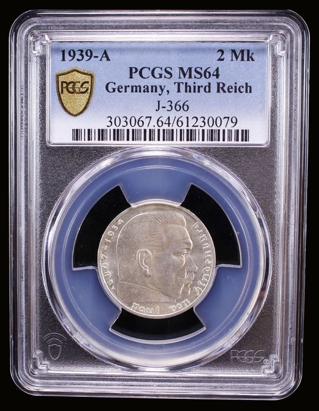 GERMANY: Third Reich, AR 2 reichsmark, 1939-A, PCGS MS63