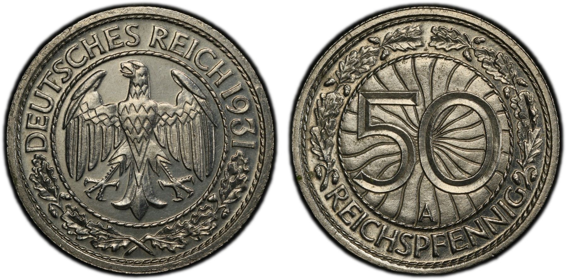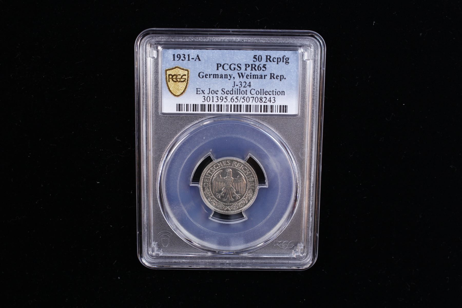 GERMANY: Weimar Republic, 50 reichspfennig, 1931-A, KM-49, J-324, a superb proof quality example! PCGS graded Proof 65, ex Joe Sedillot Collection.