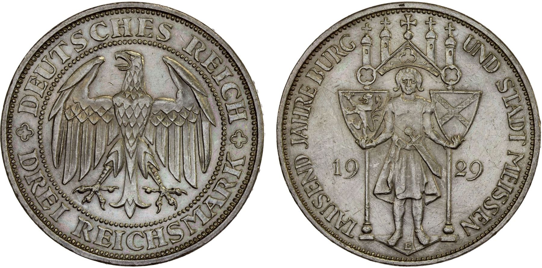 GERMANY: Weimar Republic, AR 3 reichsmark, Muldenhutten, 1929-E, Unc
