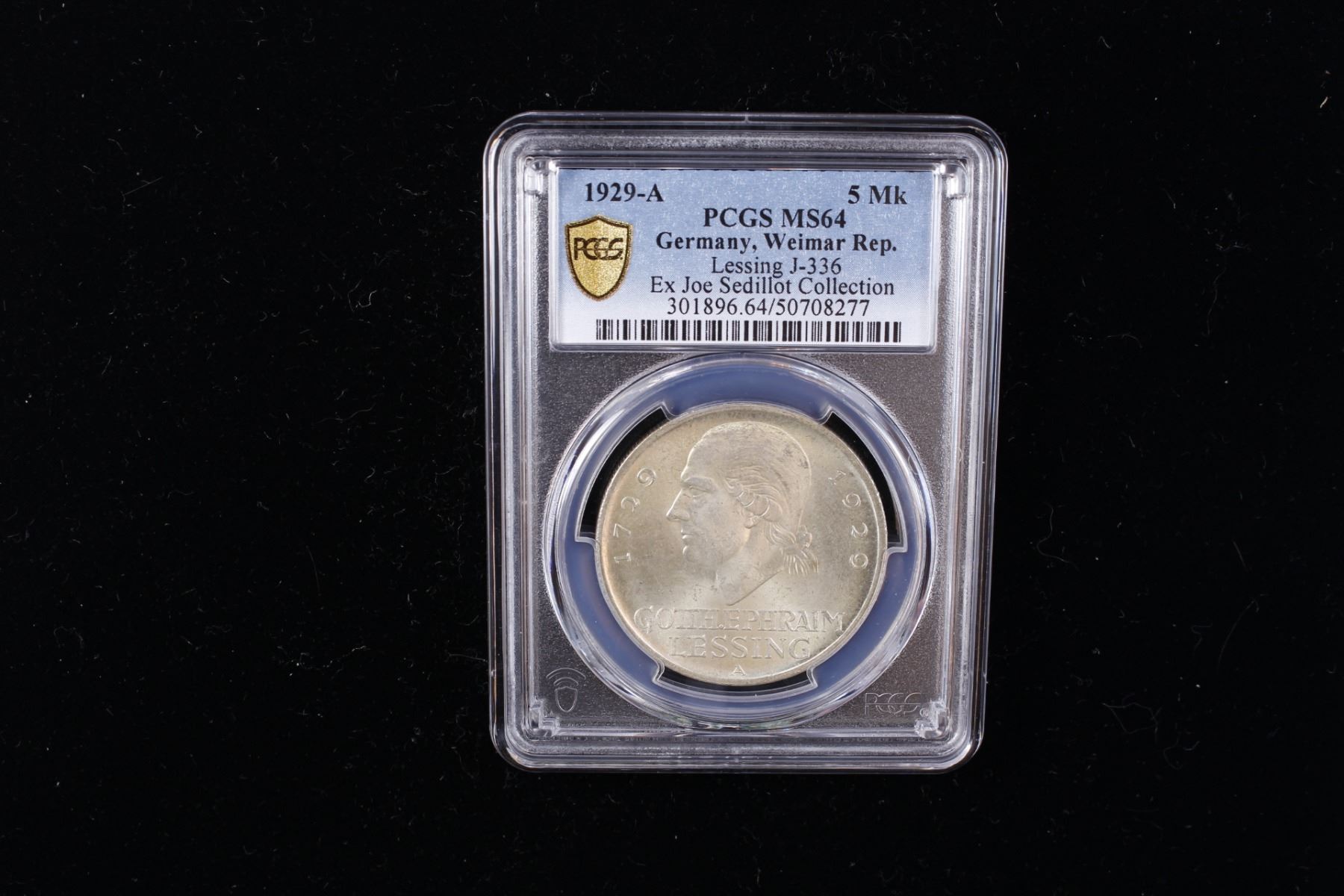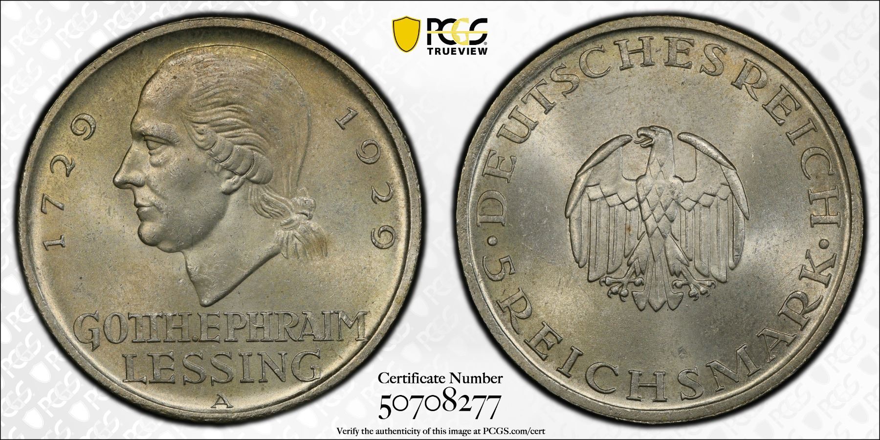 GERMANY: Weimar Republic, AR 5 reichsmark, 1929-A, KM-61, Y-63, J-336, 200th Anniversary of the Birth of Gotthold Lessing, a wonderful lustrous example! PCGS graded MS64, ex Joe Sedillot Collection.