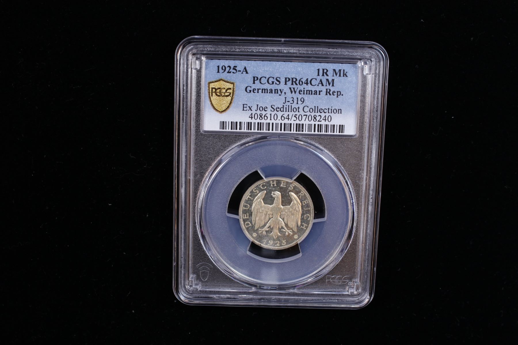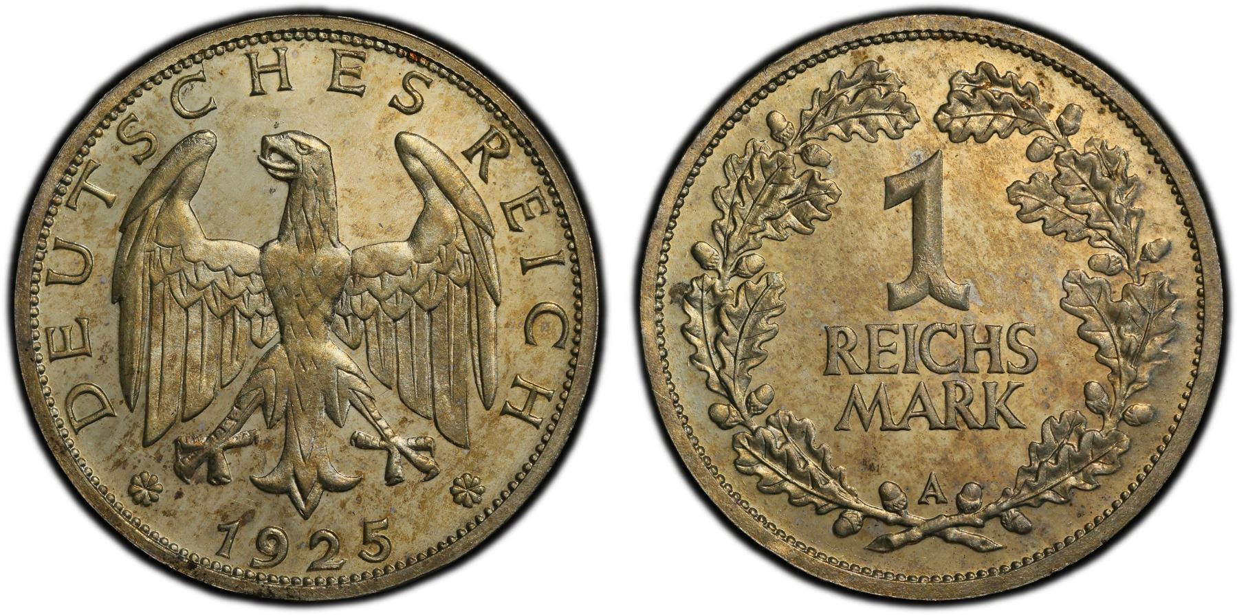 GERMANY: Weimar Republic, AR reichsmark, 1925-A, KM-44, J-319, a wonderful proof quality example! PCGS graded Proof 64 CAM, ex Joe Sedillot Collection