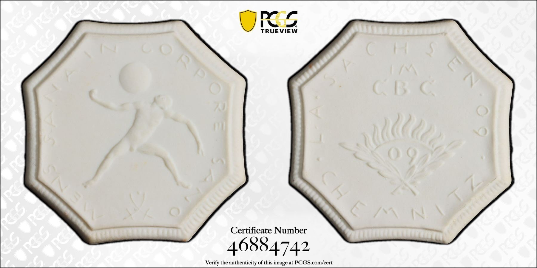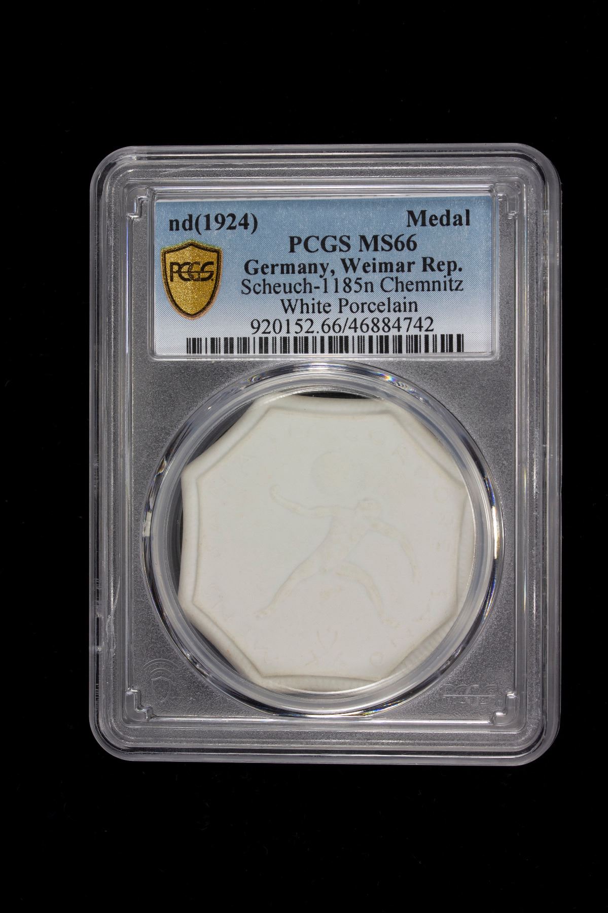 GERMANY: Weimar Republic, porcelain medal, ND (1924), Scheuch-1185.n, white porcelain, Chemnitz, "a healthy mind in a healthy body", a fantastic quality example! PCGS graded MS66.