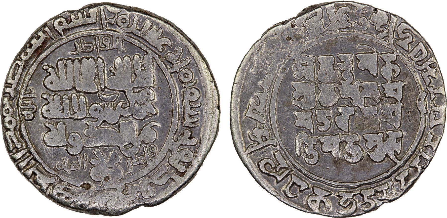 GHAZNAVID: Mahmud, 999-1030, AR bilingual dirham (2.86g), Mahmudpur (Lahore), AH418/418, A-1610, bold strike, very clear Arabic & Sanskrit date, choice VF, S, ex Stephen Album Price List #260.