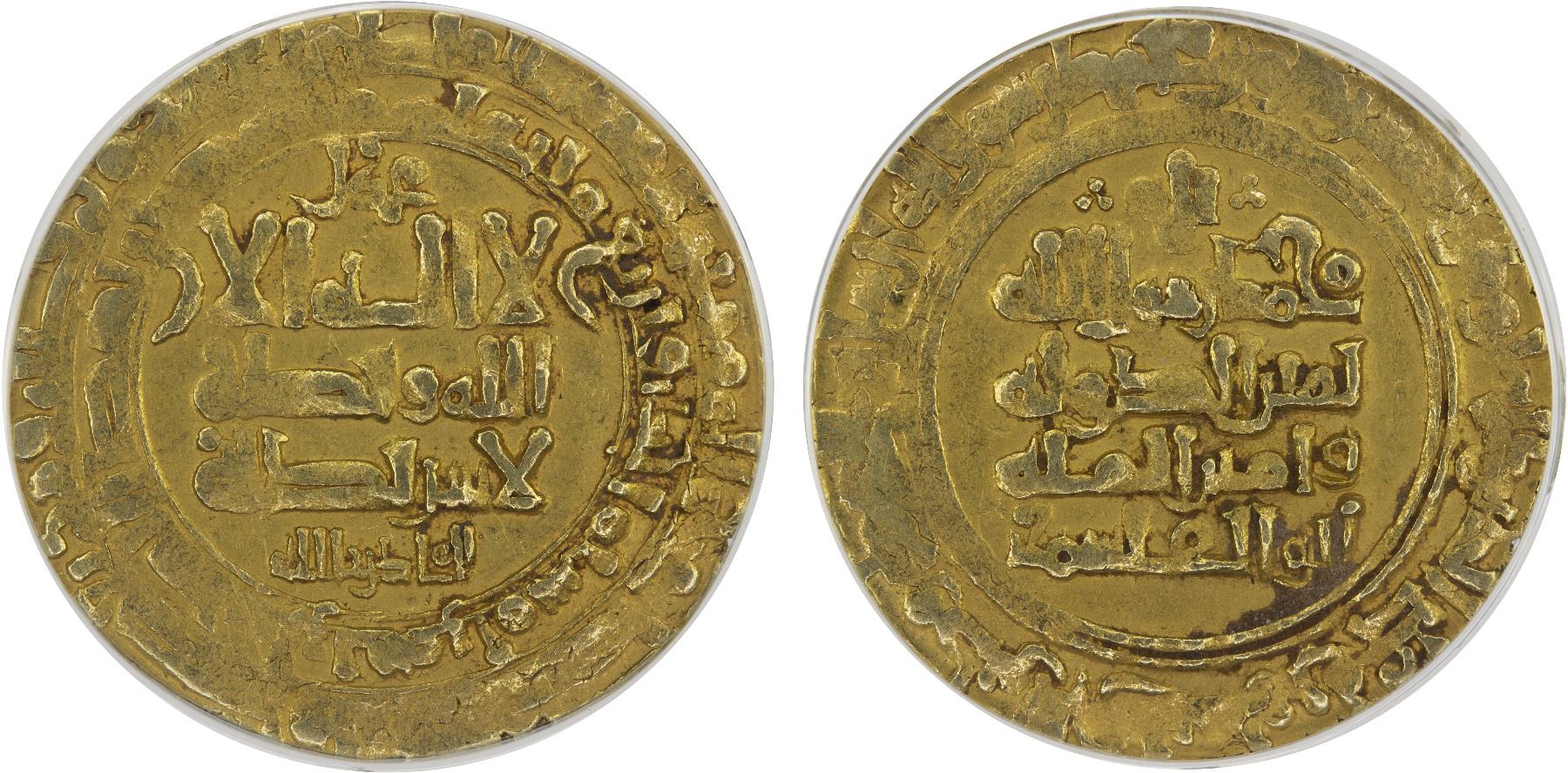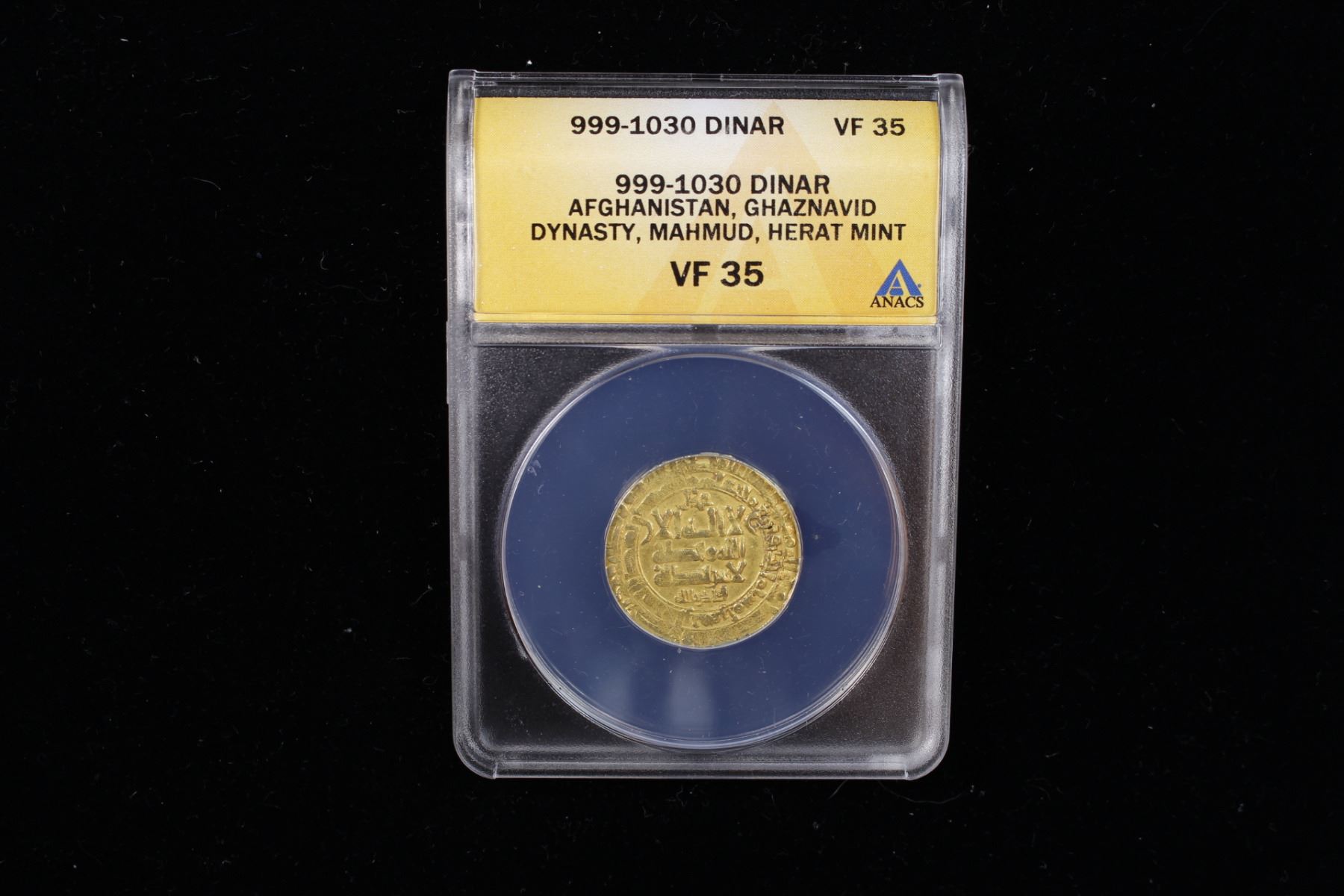 GHAZNAVID: Mahmud, 999-1030, AV dinar, Herat, AH401, A-1607, early date, when Herat dinars were still of relatively fine gold, ANACS graded VF35.