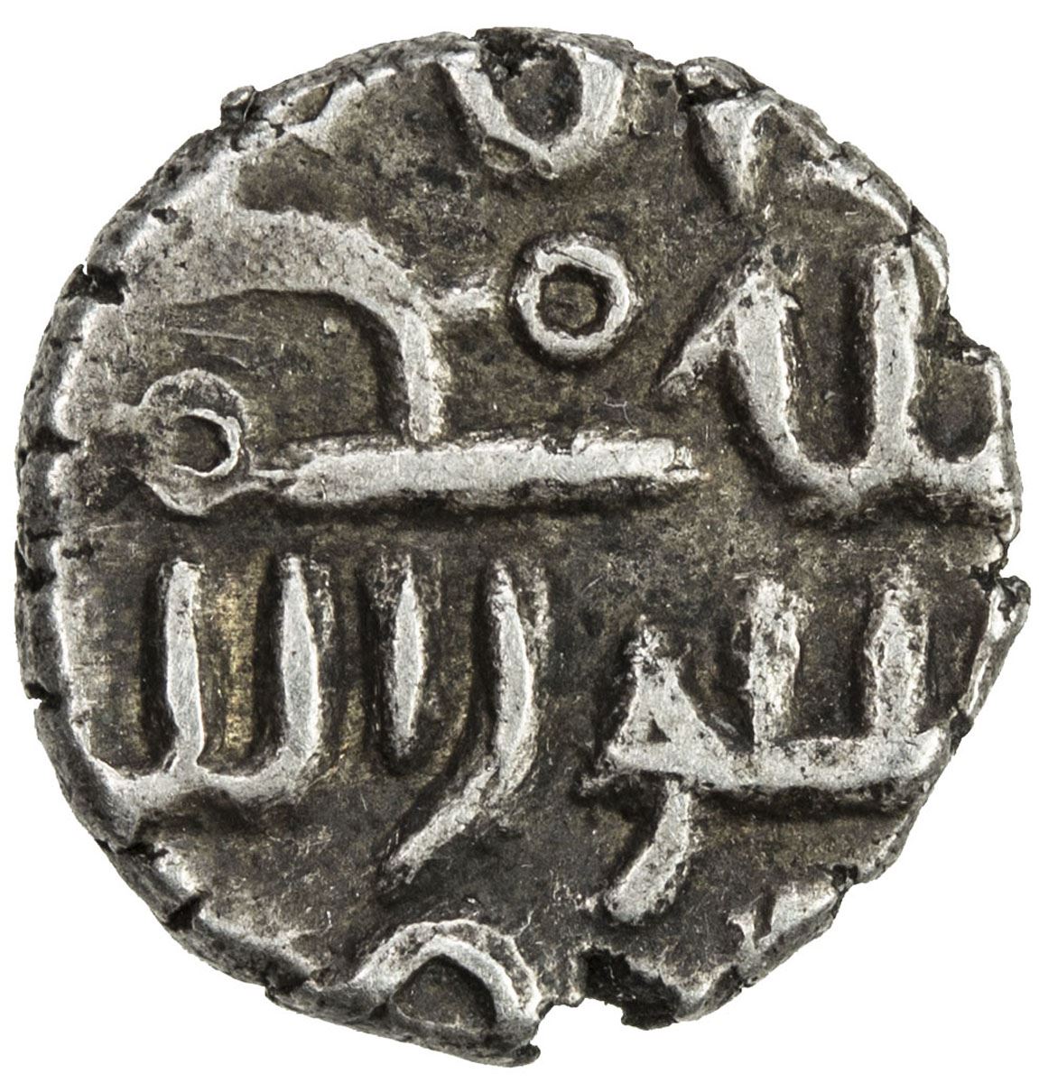 GHAZNAVID OF MULTAN: Mahmud, at Multan, 1011-1030, AR damma (0.43g), A-4593, Sunni kalima, with haqqan below // name of titles of Mahmud in 4 lines (yamin al-dawla / wa amin al-milla / mahmud bin / nasir al-din), bold strike, EF, RR. Stylistically & calligraphically identical to the last Fatimid issues of Multan, seized by the Ghaznavid briefly in 1005, permanently in 1011.