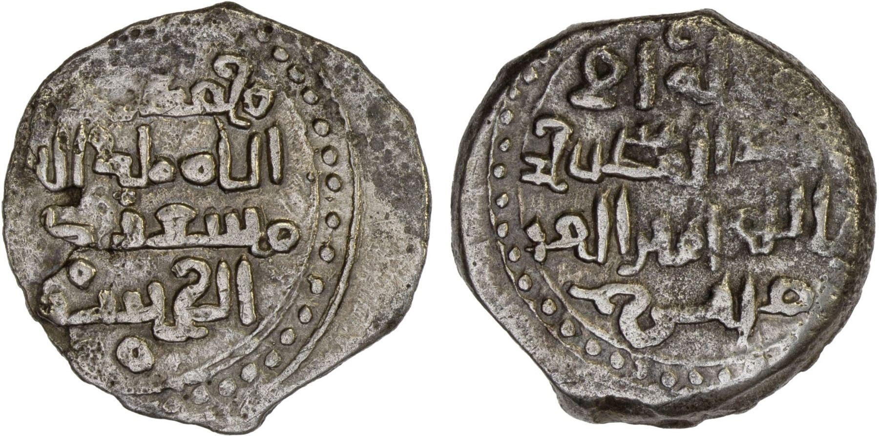 GHORID OF BAMIYAN: Fakhr al-Din Mas'ud, 1145-1163, BI dirham (4.19g), NM, ND, A-1801, slightly off-center strike, revealing that there is no margin legend on either side; citing the caliph al-Mustanjid; cleaned, VF.