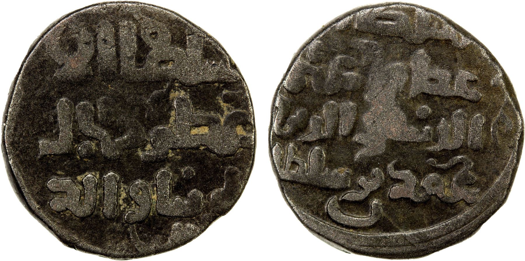 GHORID OF BAMIYAN: Jalal al-Din 'Ali, 1206-1215, AE jital (3.30g), NM, ND, A-1808, cfc. Zeno-94918, rare variety, with both Jalal al-Din 'Ali and his overlord, the Khwarizmshah 'Ala al-Din Muhammad, both entitled al-sultan, VF, RR.