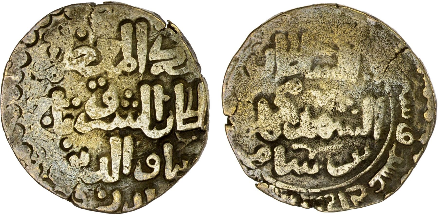 GHORID: Taj al -Din Yildiz, 1206-1215, debased AV dinar (4.05g) (Ghazna), AH612, A-1793, citing the deceased Muhammad b. Sam as al-sultan al-shahid ("the martyred sultan"), himself as "sultan of the east", F-VF, R, ex M.H. Mirza Collection.
