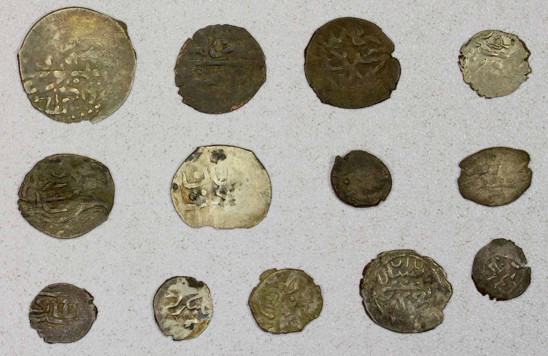 GIRAY KHANS (CRIMEA): LOT of 13 silver & billon coins, Including Sa'adat III (1 pc), Selim III (2), Arslan (1), Janibeg (3), Hajji (1), Salamat (1), and unidentifiable (4); average Good to Fne condition, mostly lower quaity strikes; retail value $200, lot of 13 pieces.