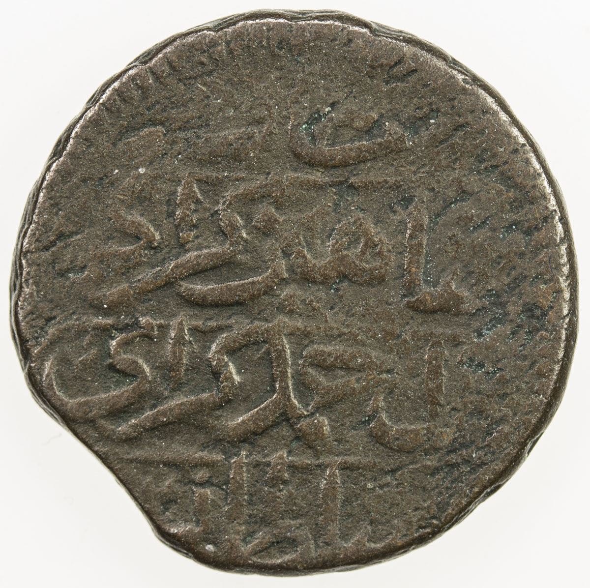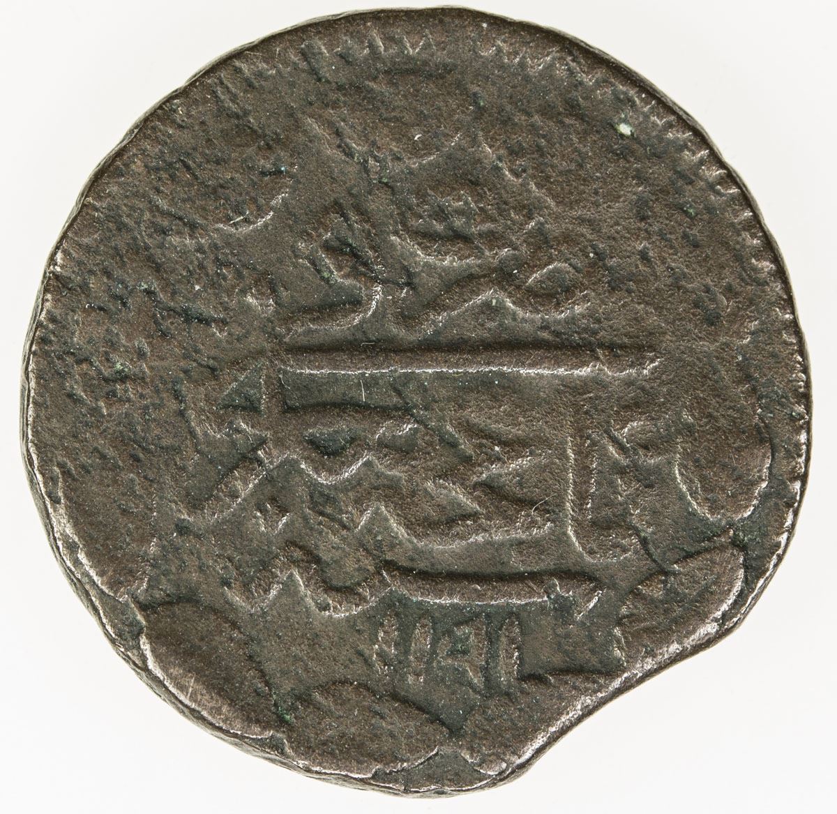 GIRAY KHANS: Shahin Giray, 1777-1783, AE denga (4.25g), Baghcha-Saray, AH1191 year 5, A-A2120, Ret-215, Sariev-445/446, 2nd series, edge with floral edge, light porosity, Fine, RR, ex Dick Nauta Collection.