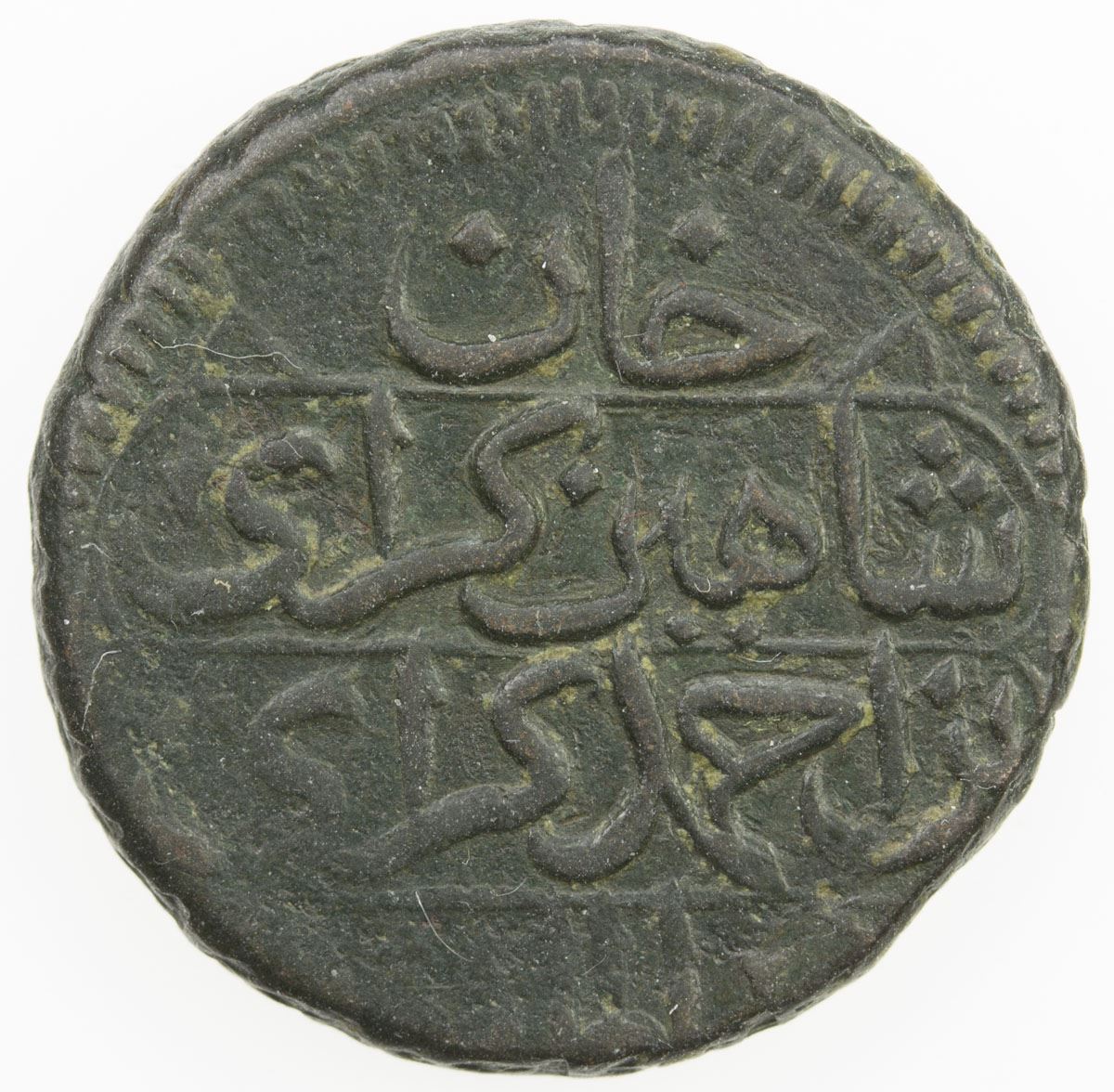 GIRAY KHANS: Shahin Giray, 1777-1783, AE denga (5.29g), Baghcha-Saray, AH1191 year 5, A-2120, Ret-217, Sariev-573, 3rd series, oblique reading edge (barely noticeable), VF, R, ex Dick Nauta Collection.