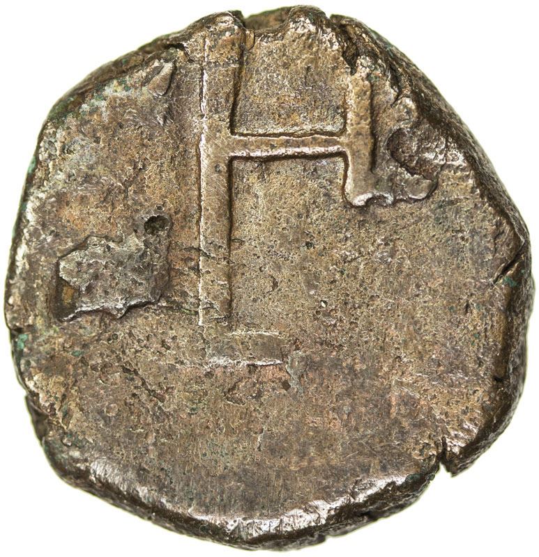 GOA: Filipe I, 1580-1598, AE 2 bazarucos (4.24g), ND, Vaz-F1.05, F on obverse, R on reverse, no other symbols, Fine, RR, ex Paul Stevens Collection.
