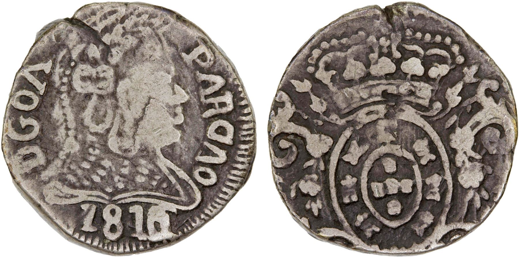 GOA: João, under regency, 1799-1816, AR pardao (5.41g), 1812/09, KM-221, a decent strike and a rarely encountered overdate, VF, R.