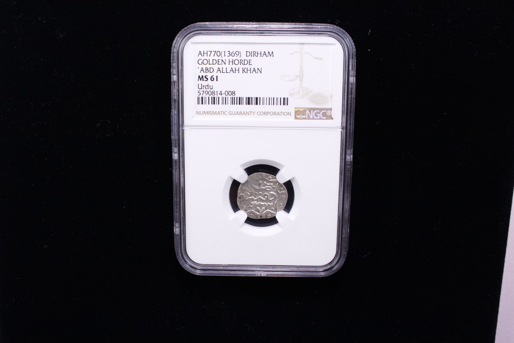 GOLDEN HORDE: 'Abd Allah Khan, 1361-1370, AR dirham, Urdu, AH770, NGC MS61