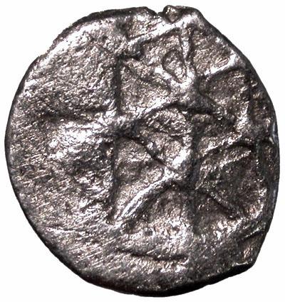 GOLDEN HORDE: Anonymous anepigraphic, ca. 1270s-1310s, AR 1/5 dirham (0.28g), [Bulghar], ND, A-B2020, Singatullina-174, tamgha in circle surrounded by triplets of pellets / ornate hexagram, decent Fine to Very Fine, RRR.
