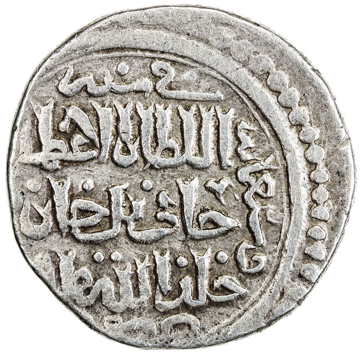 GOLDEN HORDE: Jani Beg, 1341-1357, AR dinar (2.67g), Baghdad, AH75(8), A-2028, the bottom tip of thaman for "8" is visible at the left edge of the obverse, VF, RRR. Struck by the Jalayrid ruler Shaykh Uways I, just before his own name was placed on his coinage in 759. All other Jalayrid coins dated 758 and earlier are anonymous, and it is likely that Shaykh Uways recognized Jani Beg as his nominal overlord in anticipation of imminent invasion by either the Golden Horde troops or others seeking power after the demise of the Ilkhans earlier that same year.