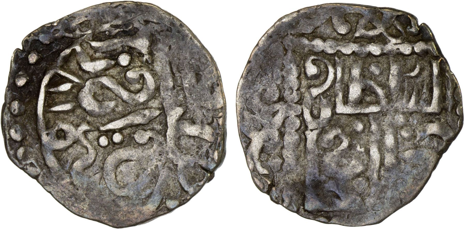 GOLDEN HORDE: Pulad Khan, 1407-1413, AR dirham (1.10g), Khwarizm, AH810, A-2055A, nice strike, cf. Zeno-50101 for very similar type, choice VF, ex Ruud Schüttenhelm collection. The date on this piece is AH810, with the "0" in the form of our letter O, not to be misread as AH815.