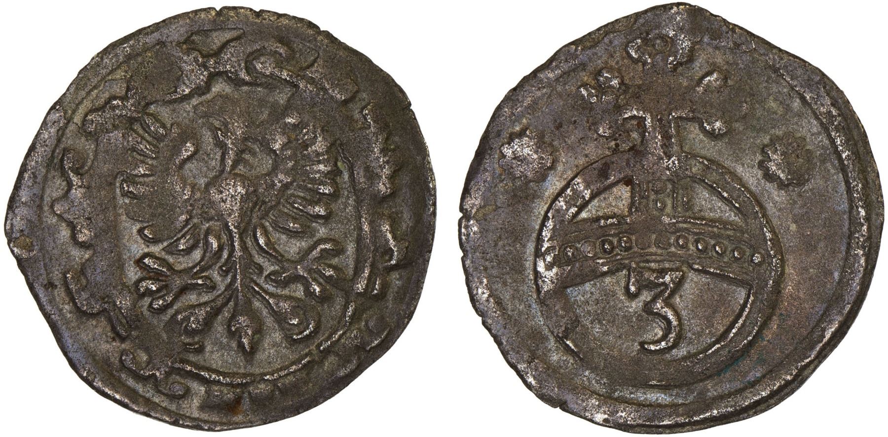 GOSLAR: Free Imperial City, AR dreier, ND, KM-5, BBK-249b, Lebek-66, eagle with displayed wings and head left in ornate oval frame // Imperial orb and denomination, VF.
