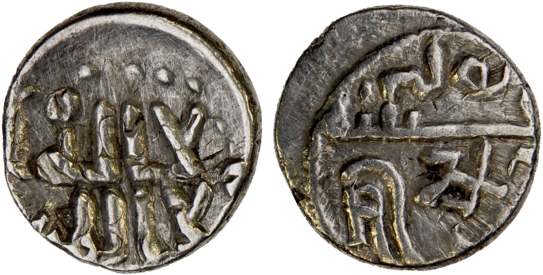 GOVERNORS OF SIND: 'Uyayna (b. Musa b. Ka'b, ca. 758-780, AR damma (0.39g), A-4510, Fishman-CS10, first half of the kalima // name 'uyayna in Arabic, with Nagari sri musa putra below ("son of Musa"); wonderful example! XF, RRR.
