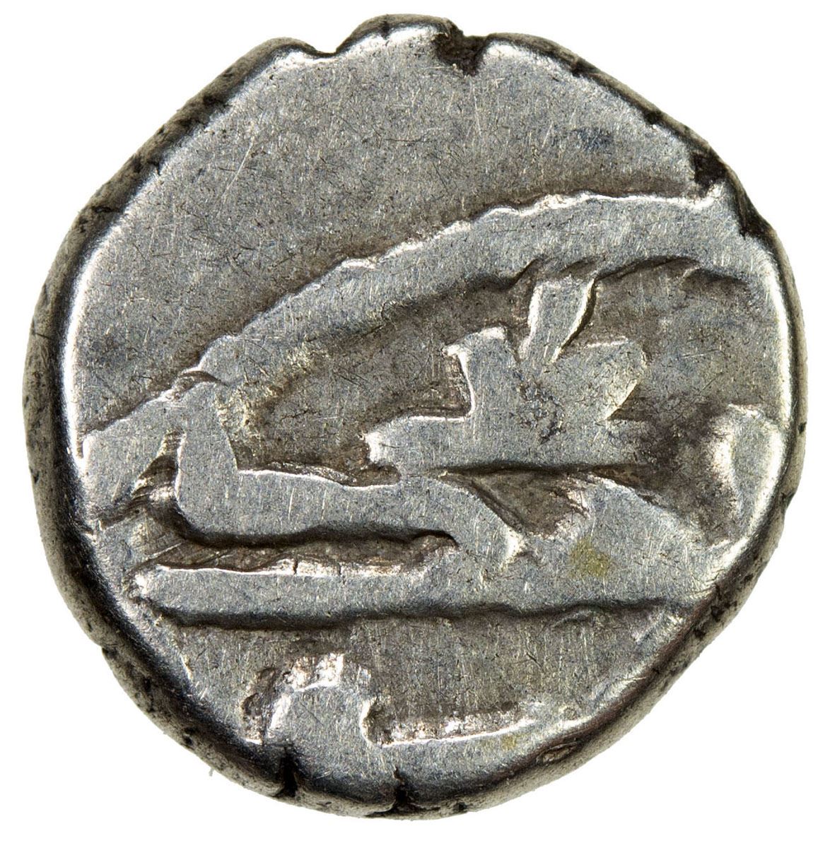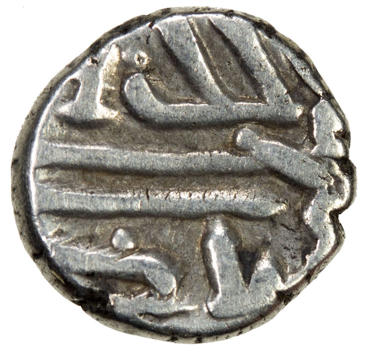 GOVERNORS OF SIND: Yahya, ca. 828-831, AR damma (0.58g), A-4516, Fishman-CS16, legends Allah wali / yahya wa / nasiruhu // 'izz / muhammad / rasul / Allah, misaligned reverse die, VF, RRR.