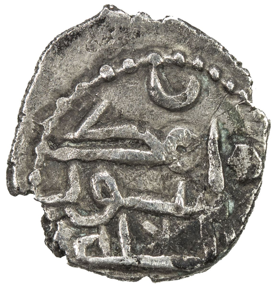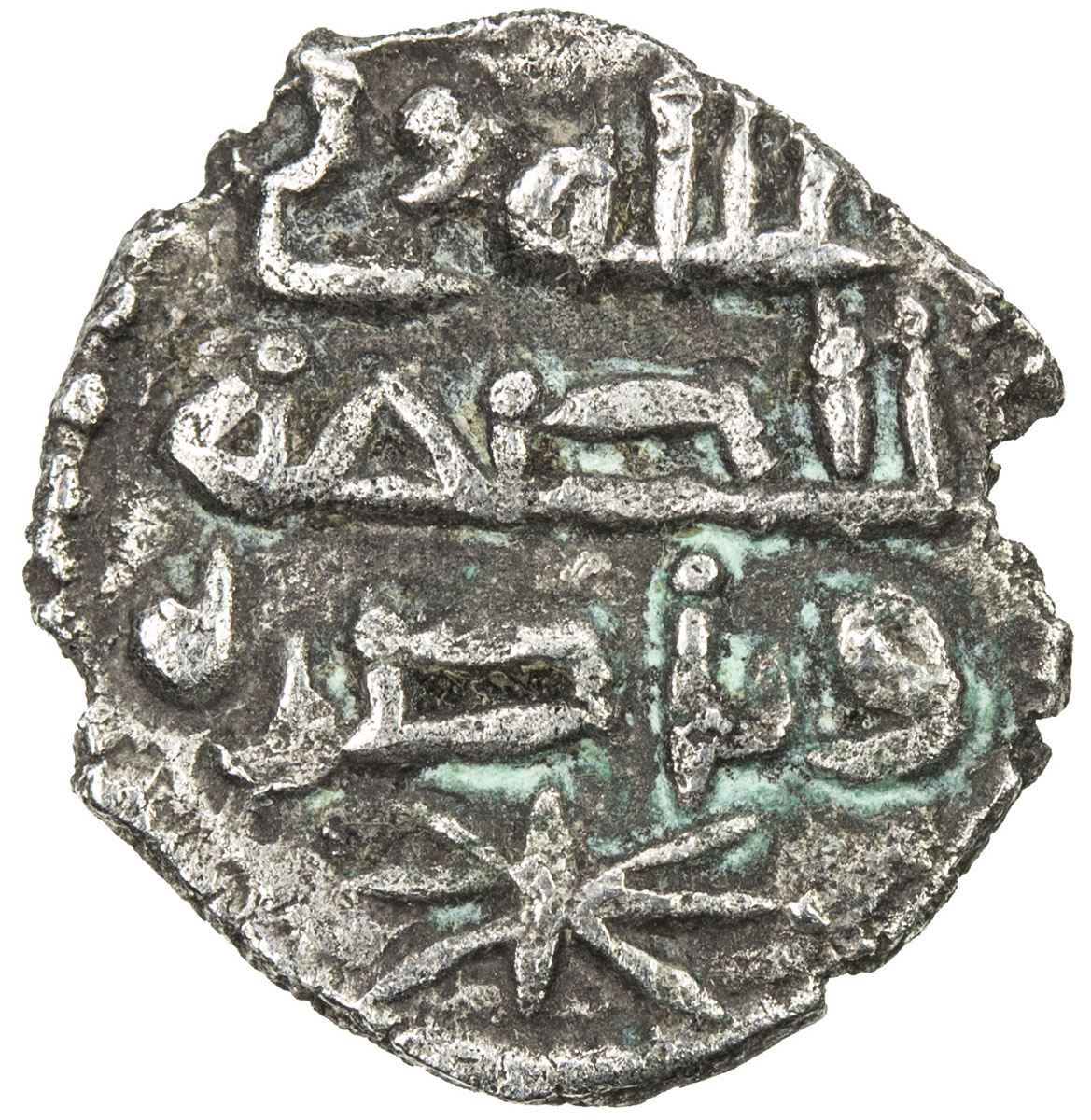 GOVERNORS OF SIND: al-Simma al-Turki, ca. 850s, AR damma (0.46g), A-4521, Fishman CS25, legend Allah wali / al-simma / wa nasiruhu, 8-point star below // muhammad / rasul / Allah, crescent above, one ding on reverse, bold VF, RRR.