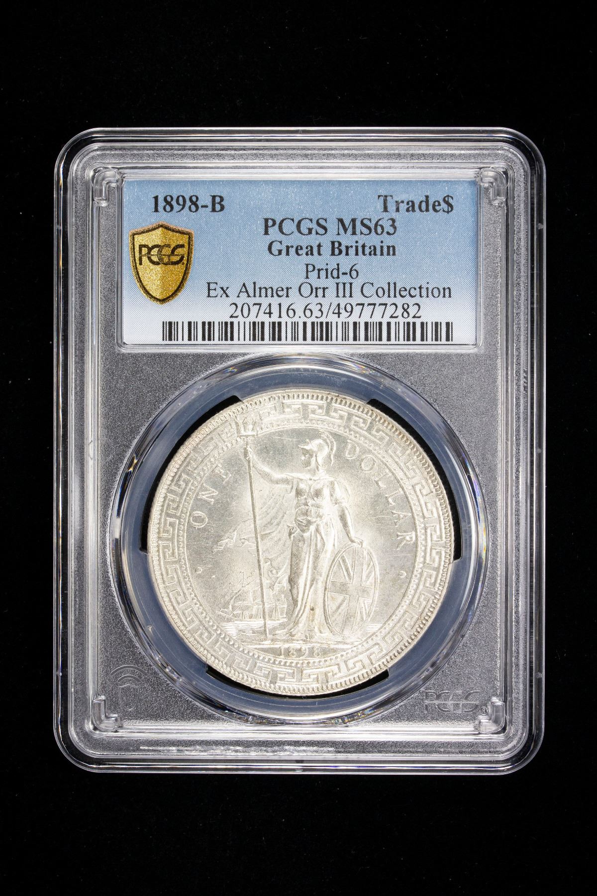 GREAT BRITAIN: AR trade dollar, 1898-B, KM-T5, a lovely lustrous mint state example! PCGS graded MS63, ex Almer H. Orr III Collection.