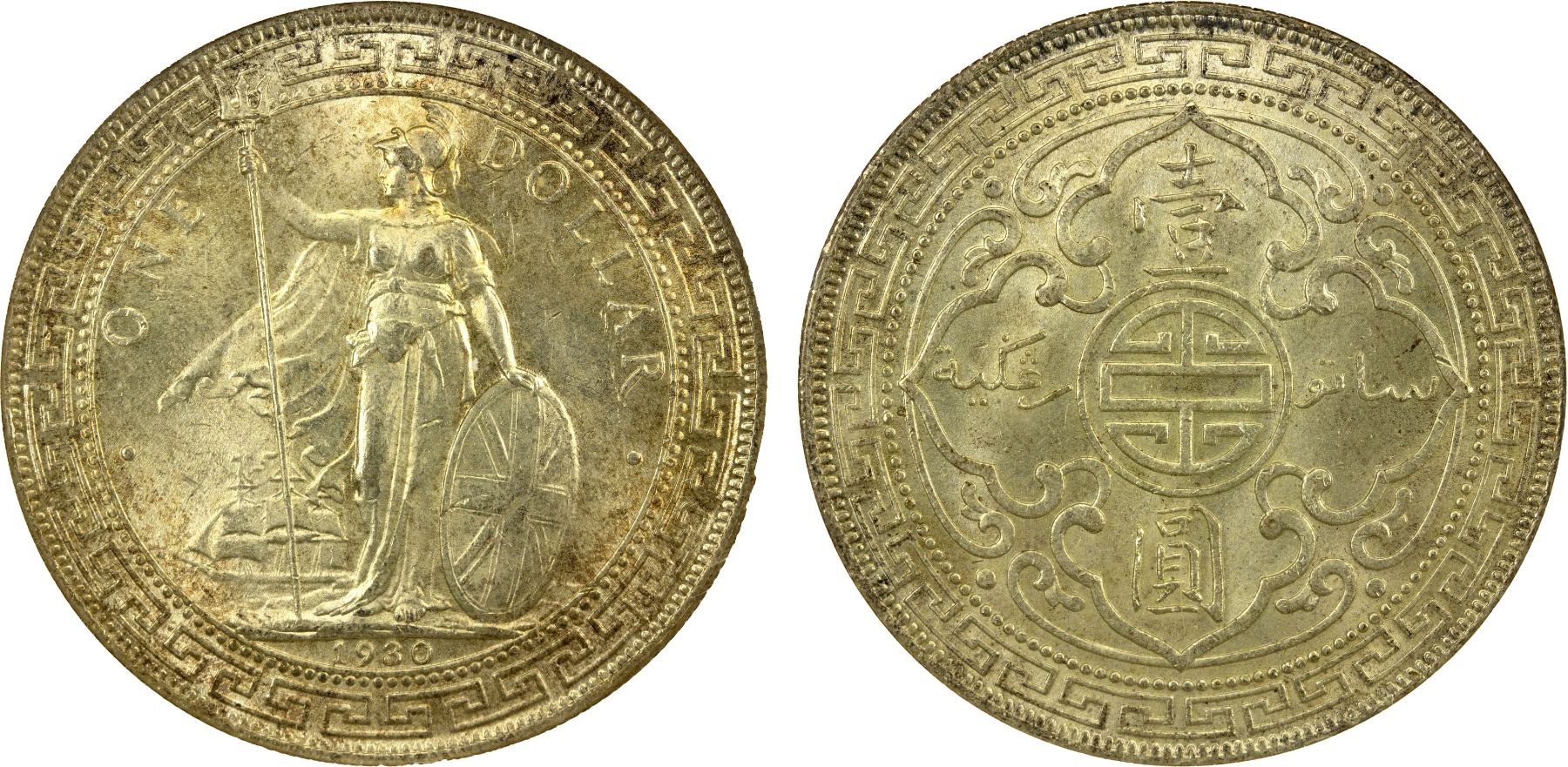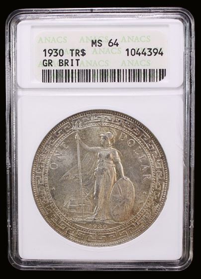 GREAT BRITAIN: AR trade dollar, 1930, KM-T5, attractive light toning, ANACS graded MS64.