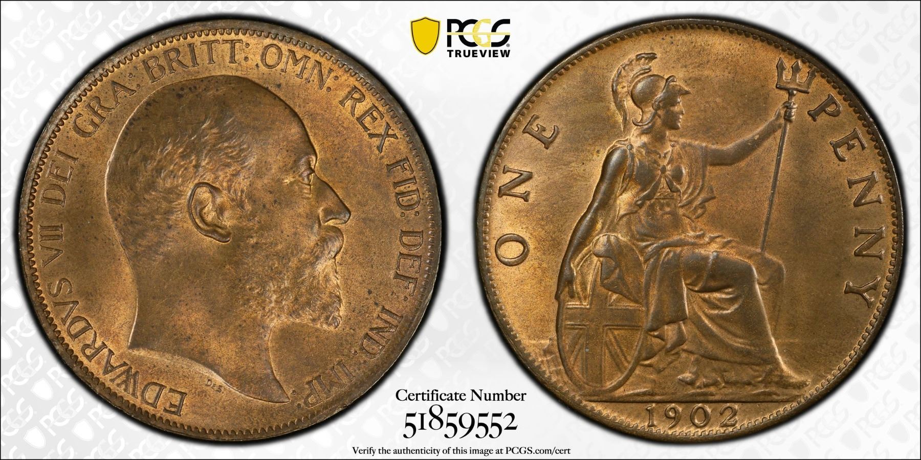 GREAT BRITAIN: Edward VII, 1901-1910, AE penny, 1902, PCGS MS64 RB