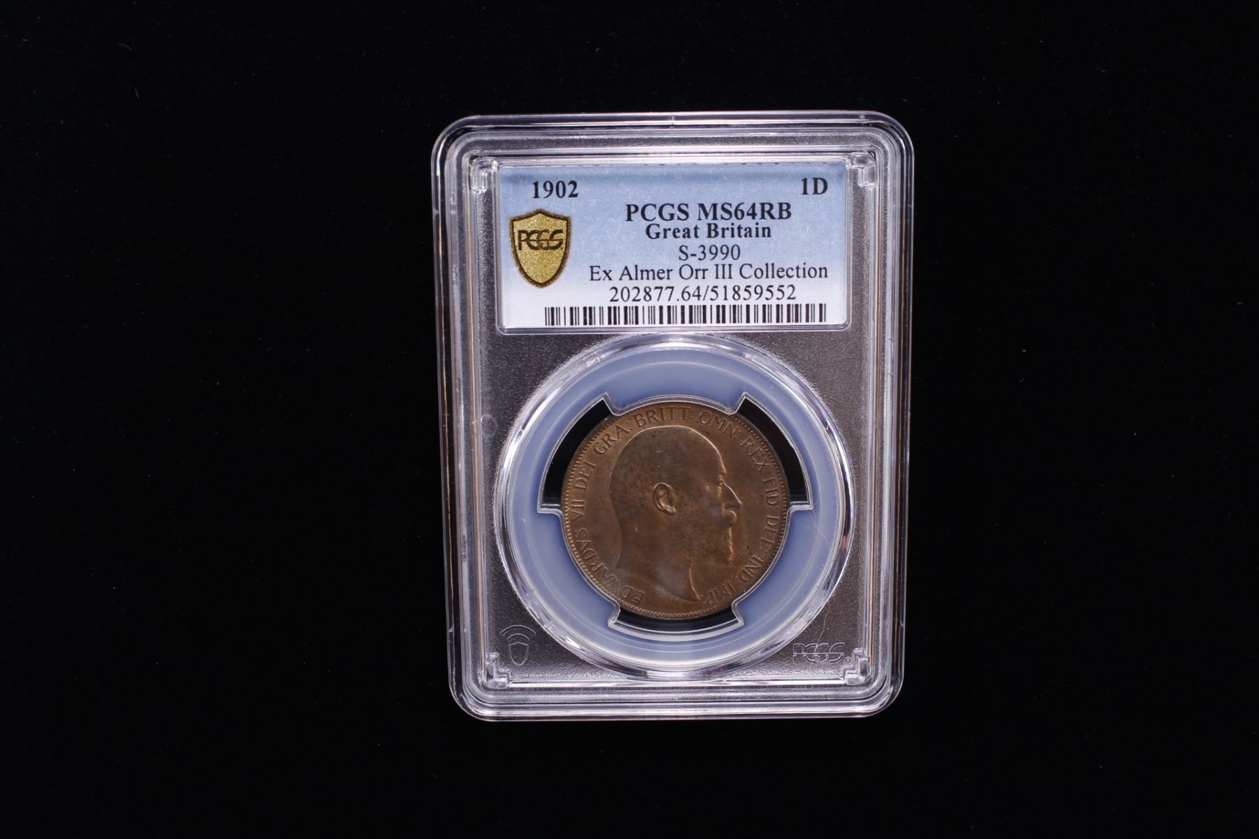 GREAT BRITAIN: Edward VII, 1901-1910, AE penny, 1902, KM-794.2, S-3990, normal tide variety, a wonderful example, PCGS graded MS64 RB, ex Almer H. Orr III Collection.