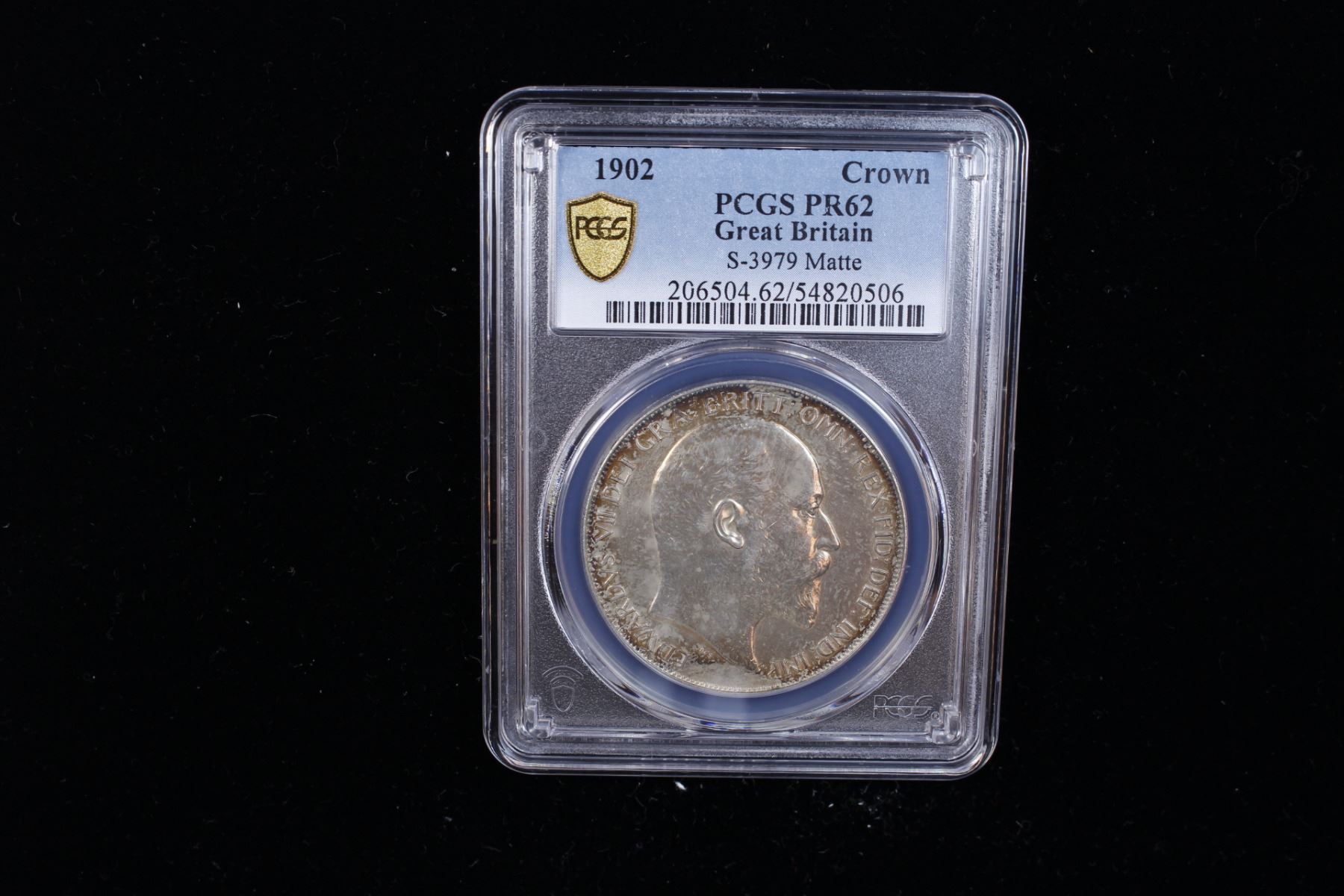 GREAT BRITAIN: Edward VII, 1901-1910, AR crown, 1902, KM-803, S-3979, matte finish, an attractive proof example, PCGS graded Proof 62.