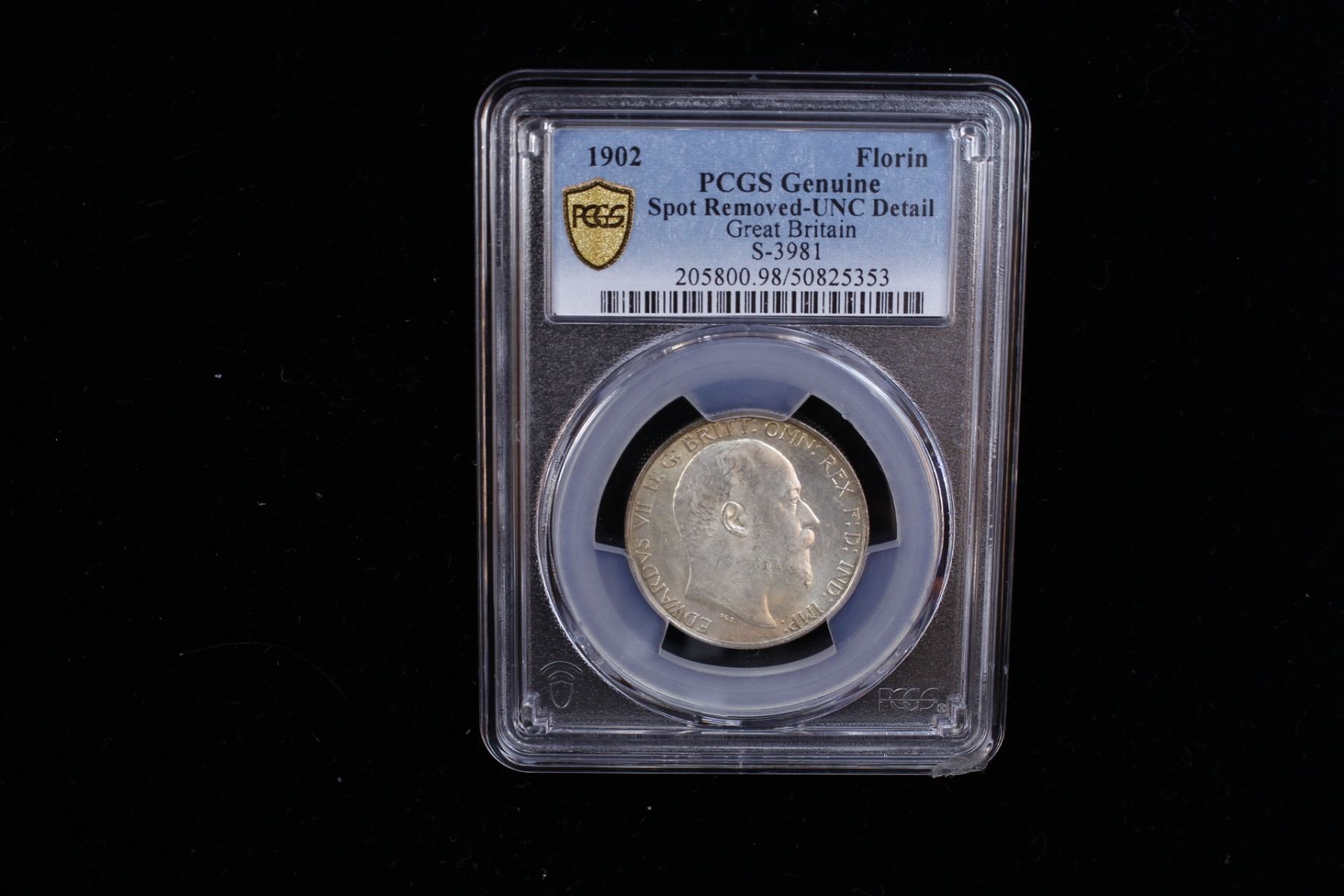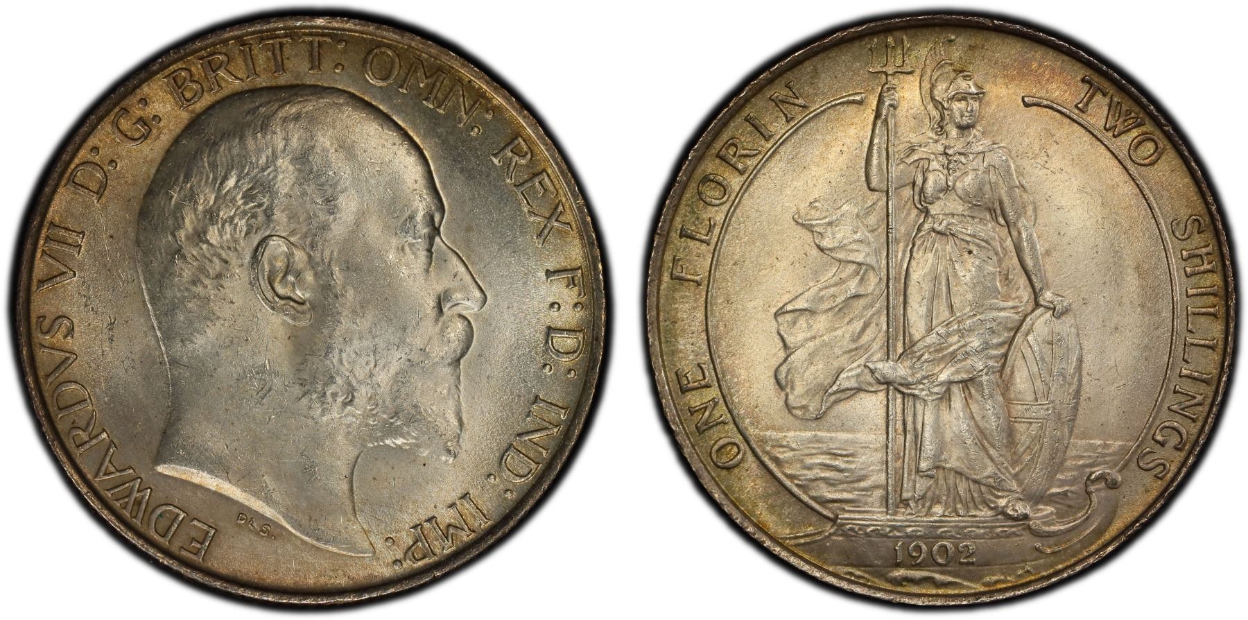 GREAT BRITAIN: Edward VII, 1901-1910, AR florin, 1902, PCGS UNC details