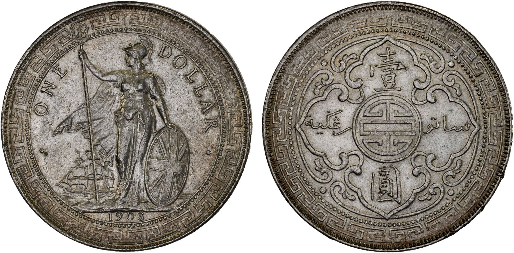GREAT BRITAIN: Edward VII, 1901-1910, AR trade dollar, Bombay, 1903-B, KM-T5, very light peripheral toning, AU.