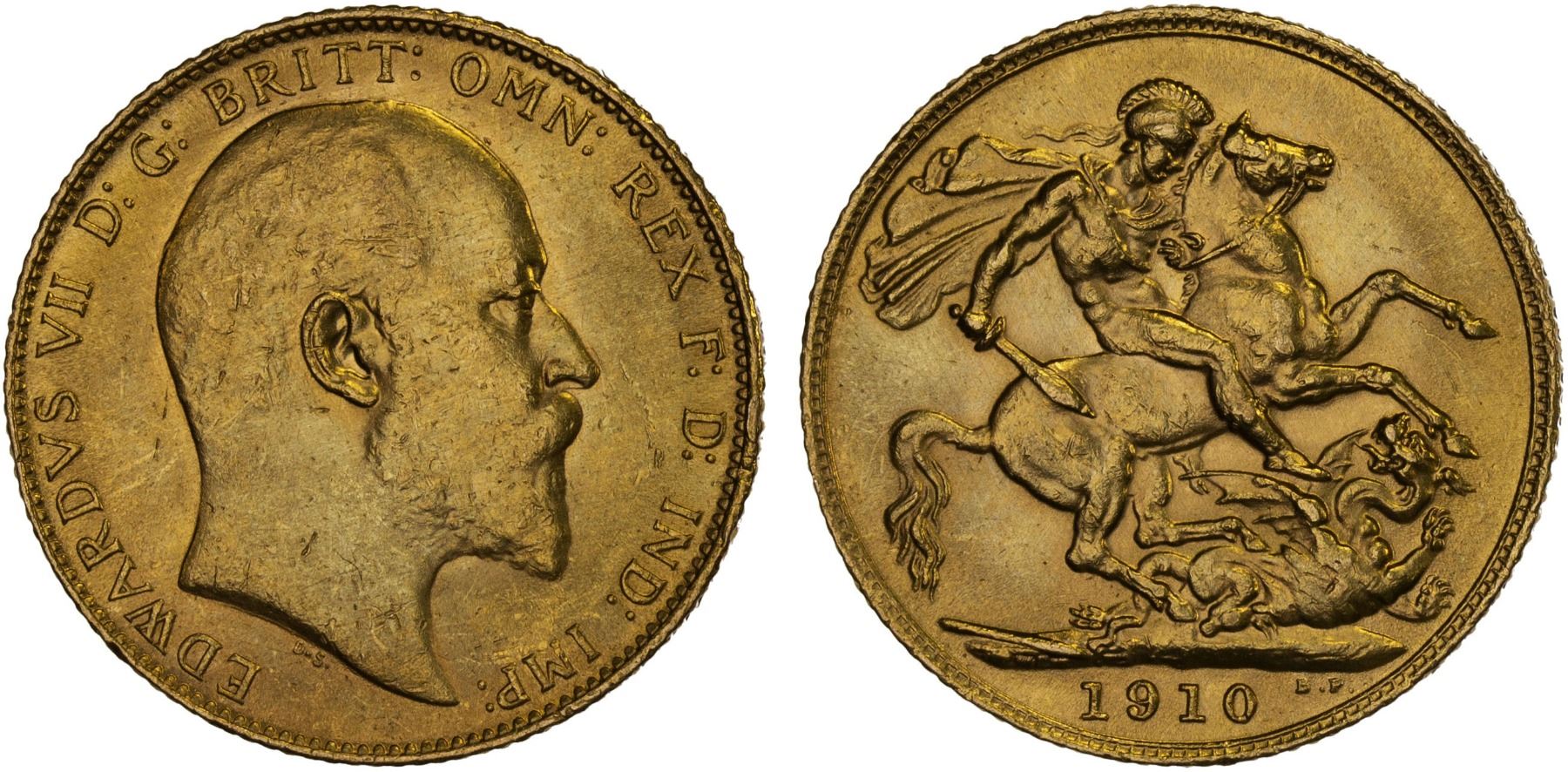GREAT BRITAIN: Edward VII, 1901-1910, AV sovereign, 1910, AU