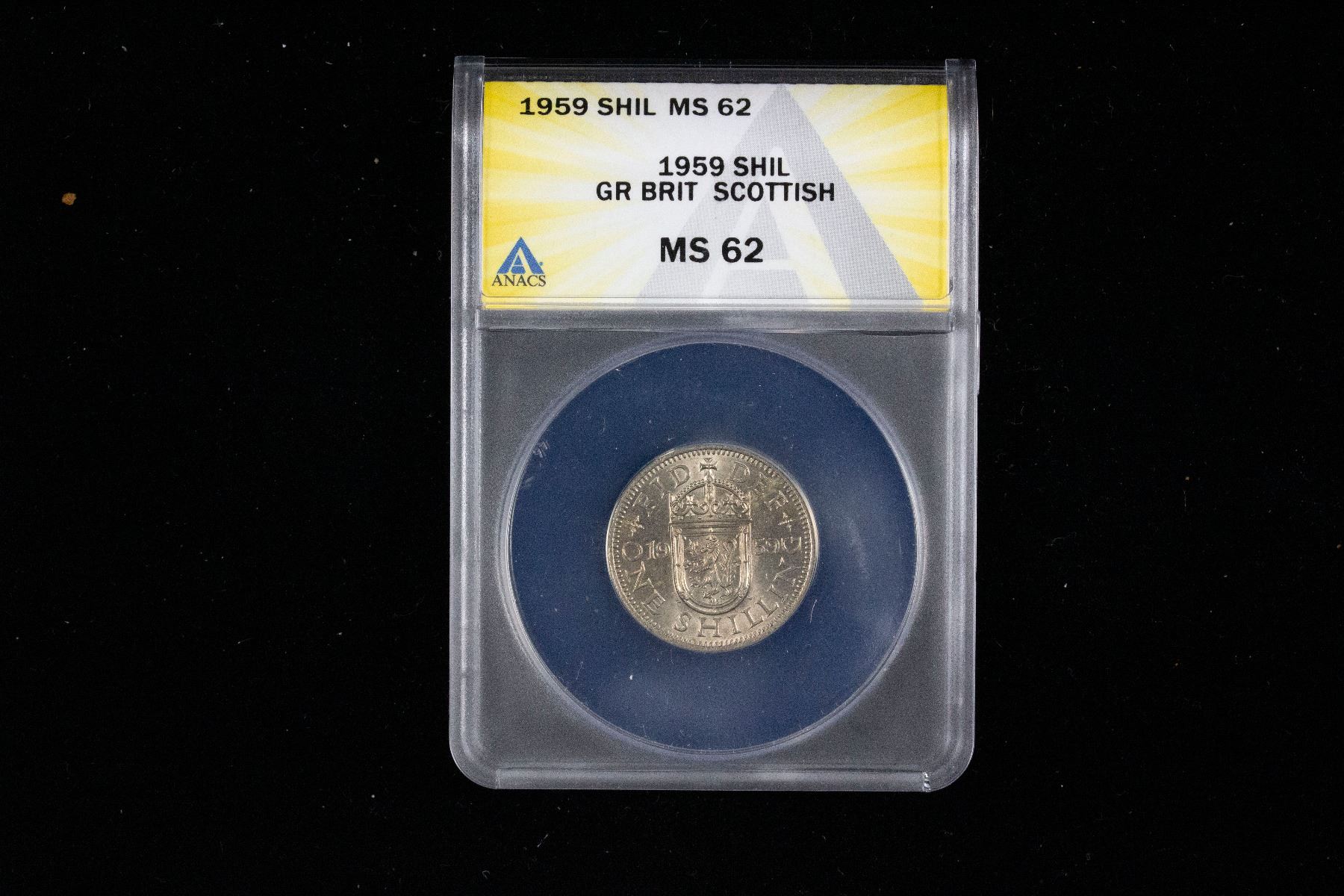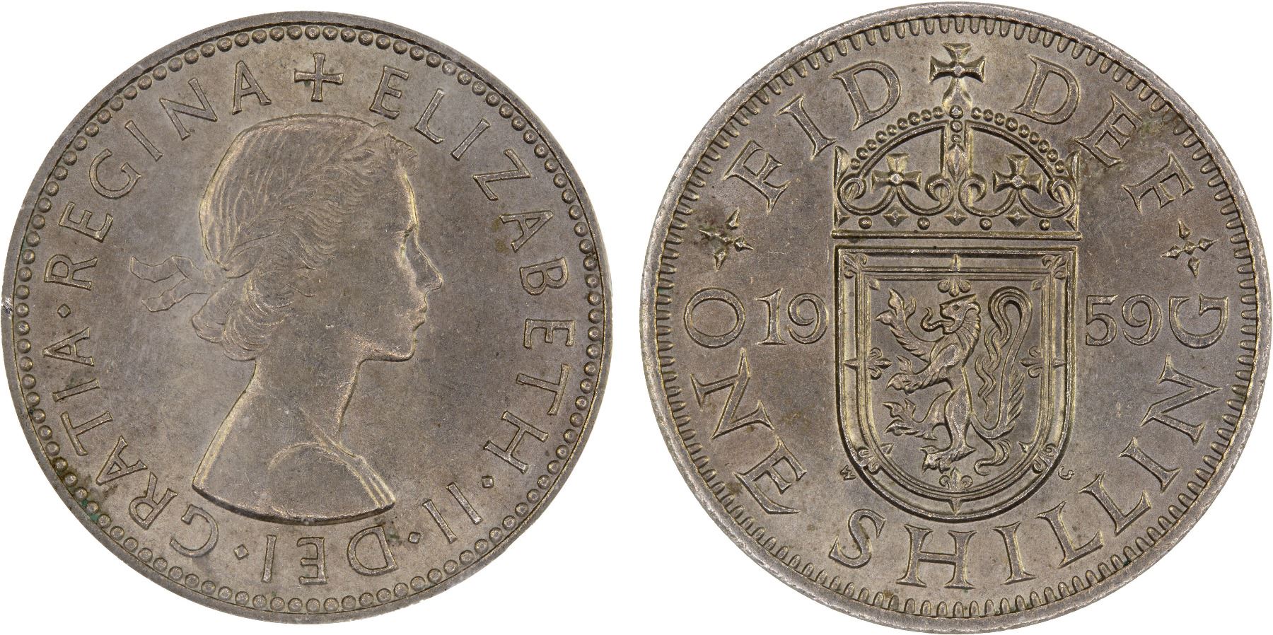 GREAT BRITAIN: Elizabeth II, 1952-2022, 1 shilling, 1959, KM-905, S-4148, a pleasing mint state example, ACG graded MS62.