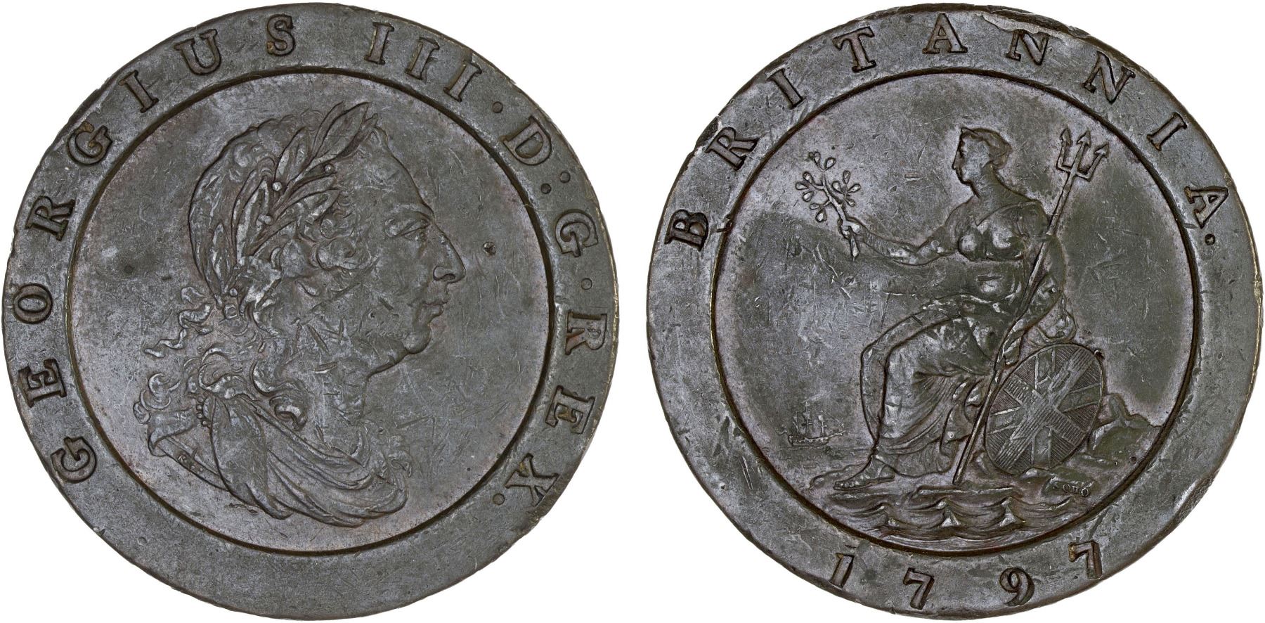 GREAT BRITAIN: George III, 1760-1820, AE 2 pence, 1797, VF