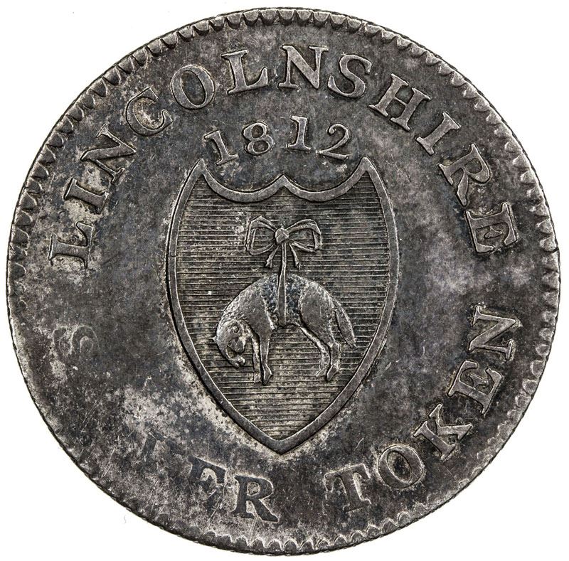 GREAT BRITAIN: George III, 1760-1820, AR 12 pence token (3.62g), 1812, Davis-2, Lincolnshire, for use and accomodation, some weakness of strike, EF.