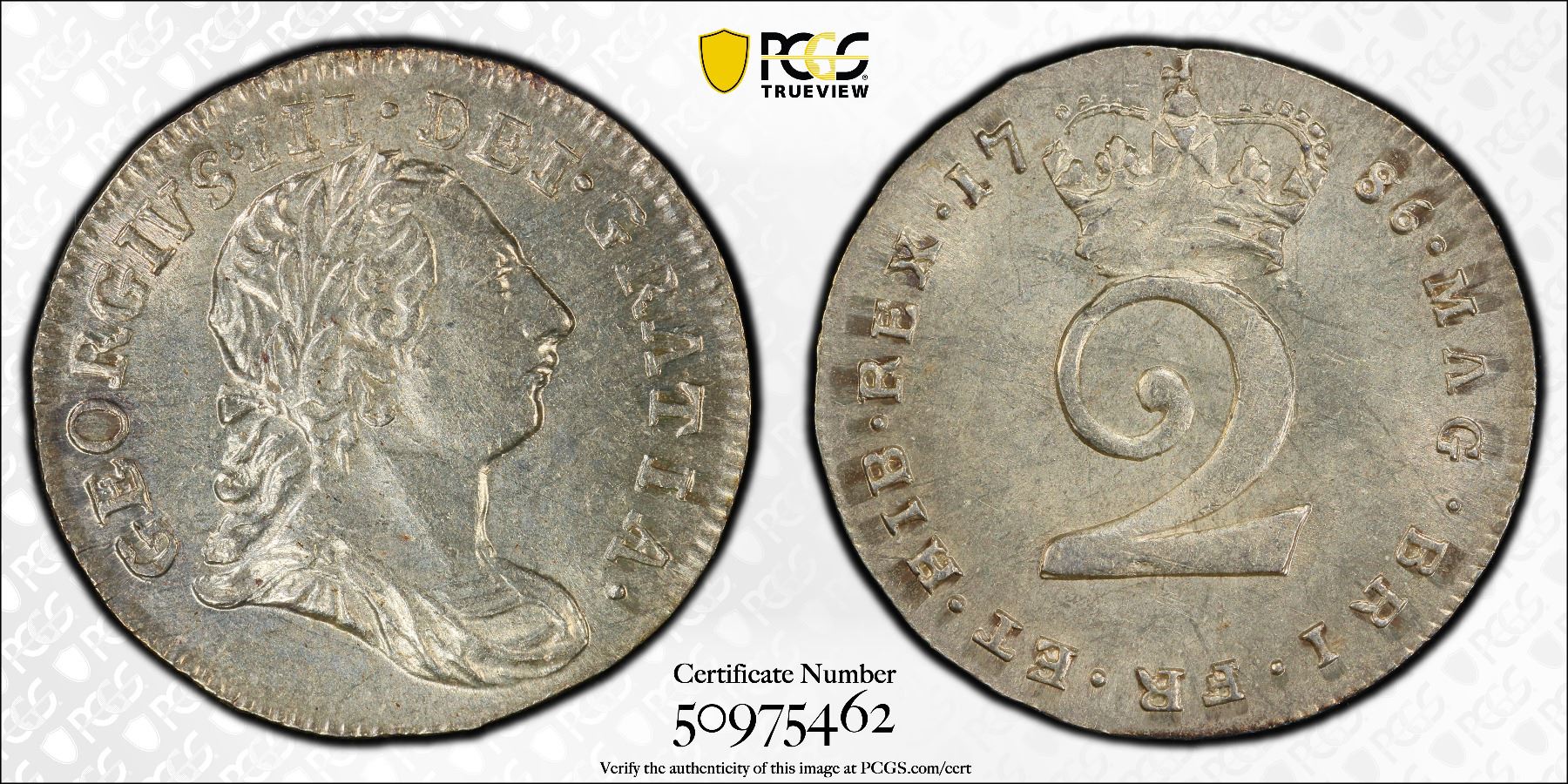 GREAT BRITAIN: George III, 1760-1820, AR 2 pence, 1786, PCGS MS64
