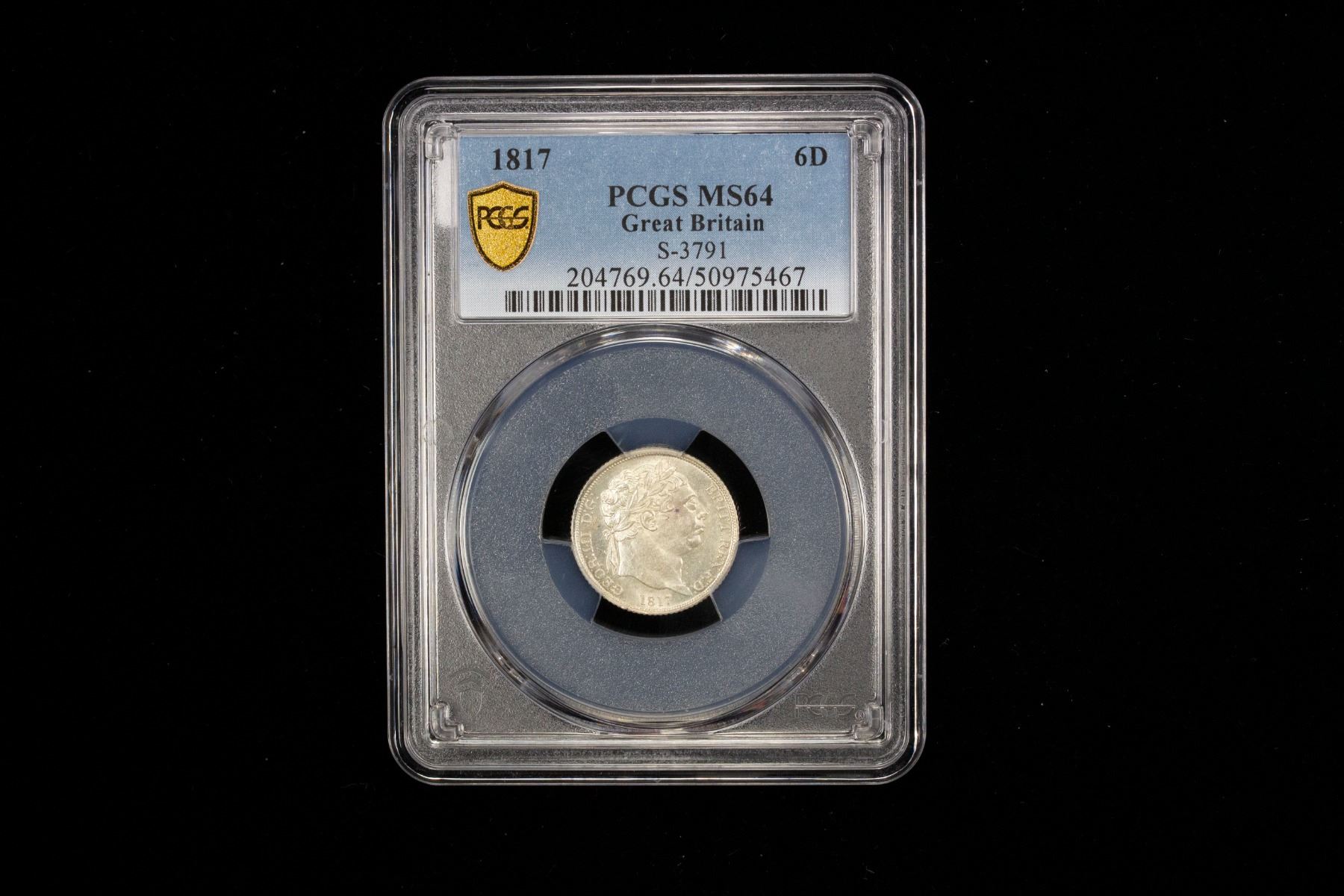 GREAT BRITAIN: George III, 1760-1820, AR 6 pence, 1817, KM-665, S-3791, a wonderful mint state example! PCGS graded MS64.