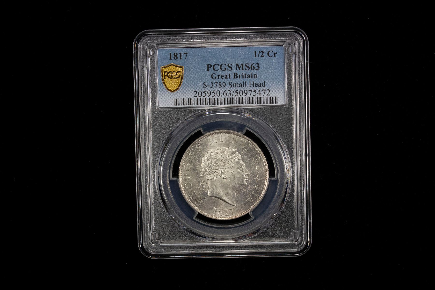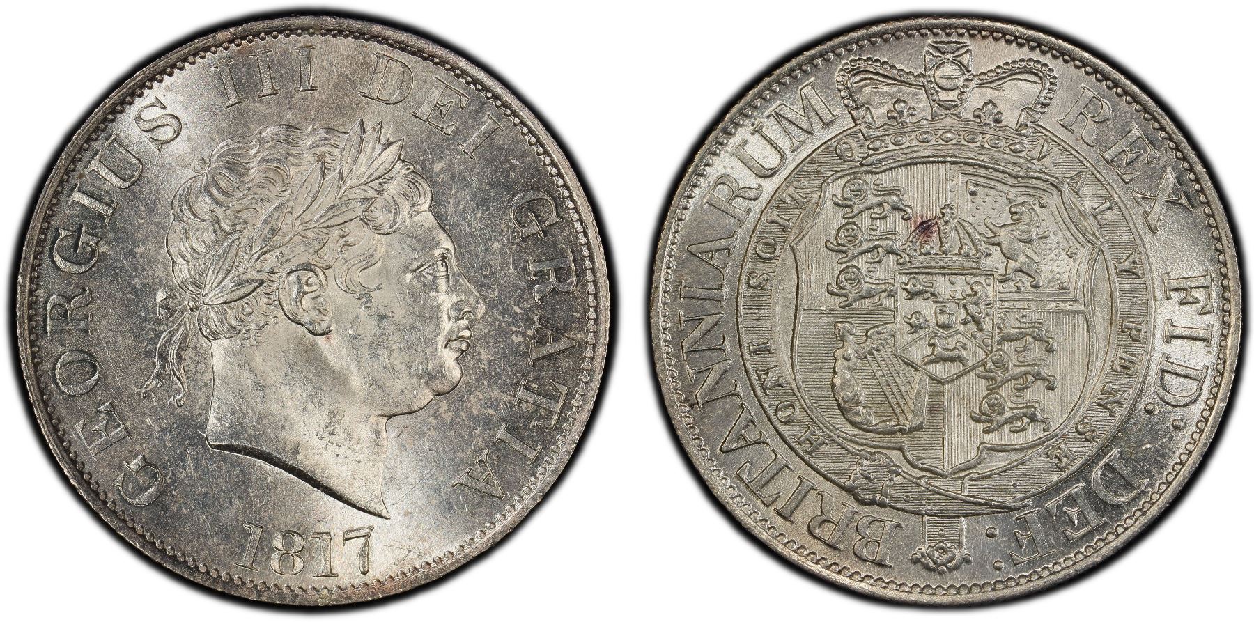 GREAT BRITAIN: George III, 1760-1820, AR halfcrown, 1817, KM-672, S-3789, small head type, a lovely mint state example! PCGS graded MS63.