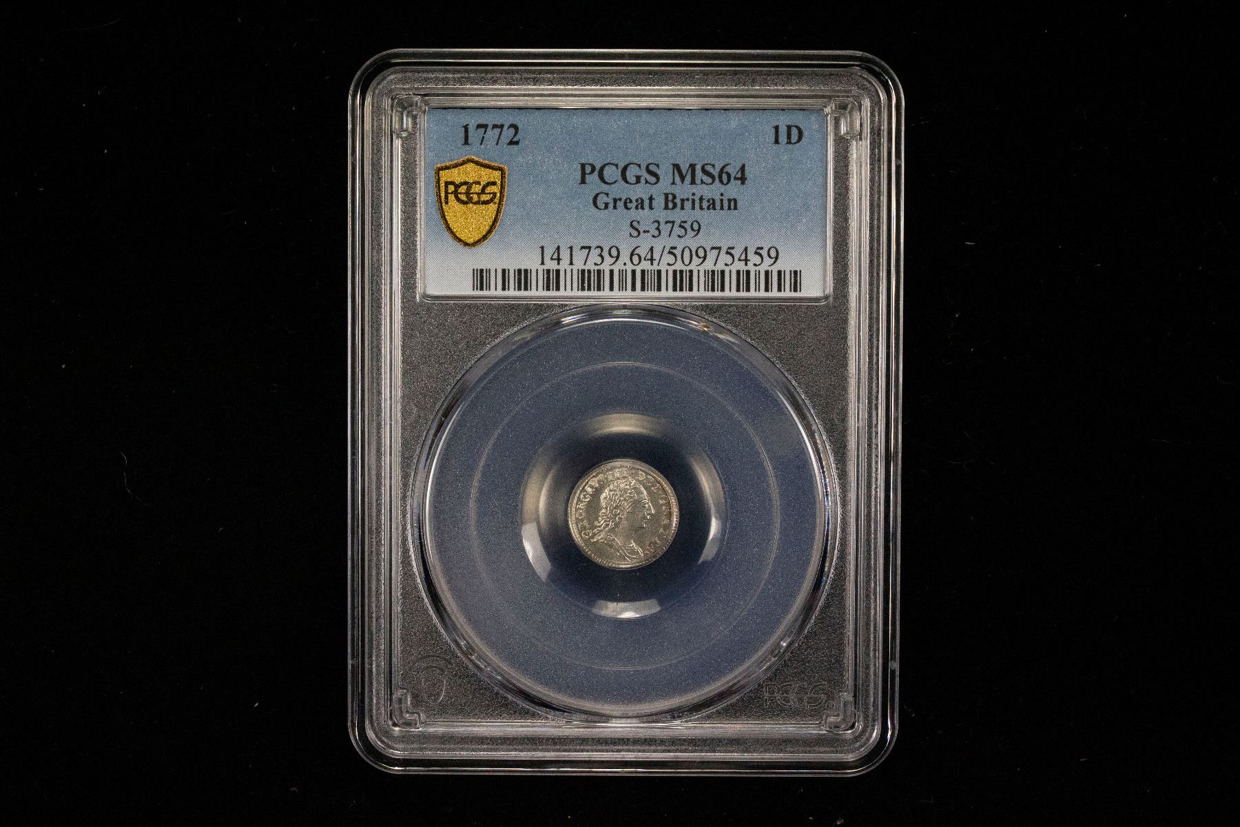 GREAT BRITAIN: George III, 1760-1820, AR penny, 1772, PCGS MS64