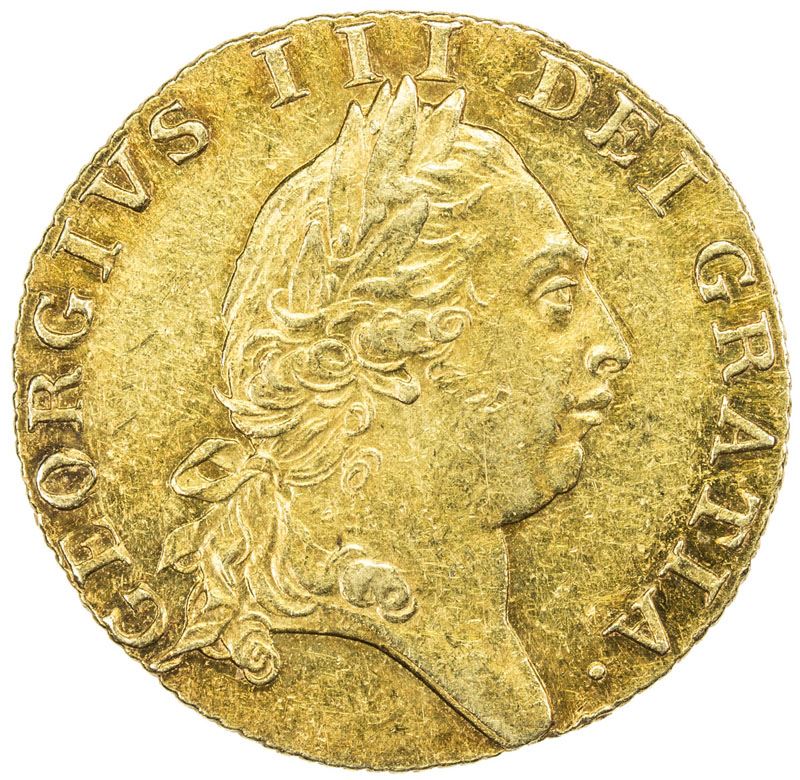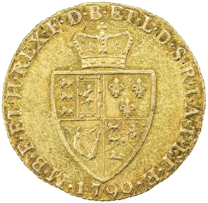 GREAT BRITAIN: George III, 1760-1820, AV guinea (8.38g), 1790, KM-609, Spink-609, fifth laureate head // spade type shield, much original luster, EF-AU.