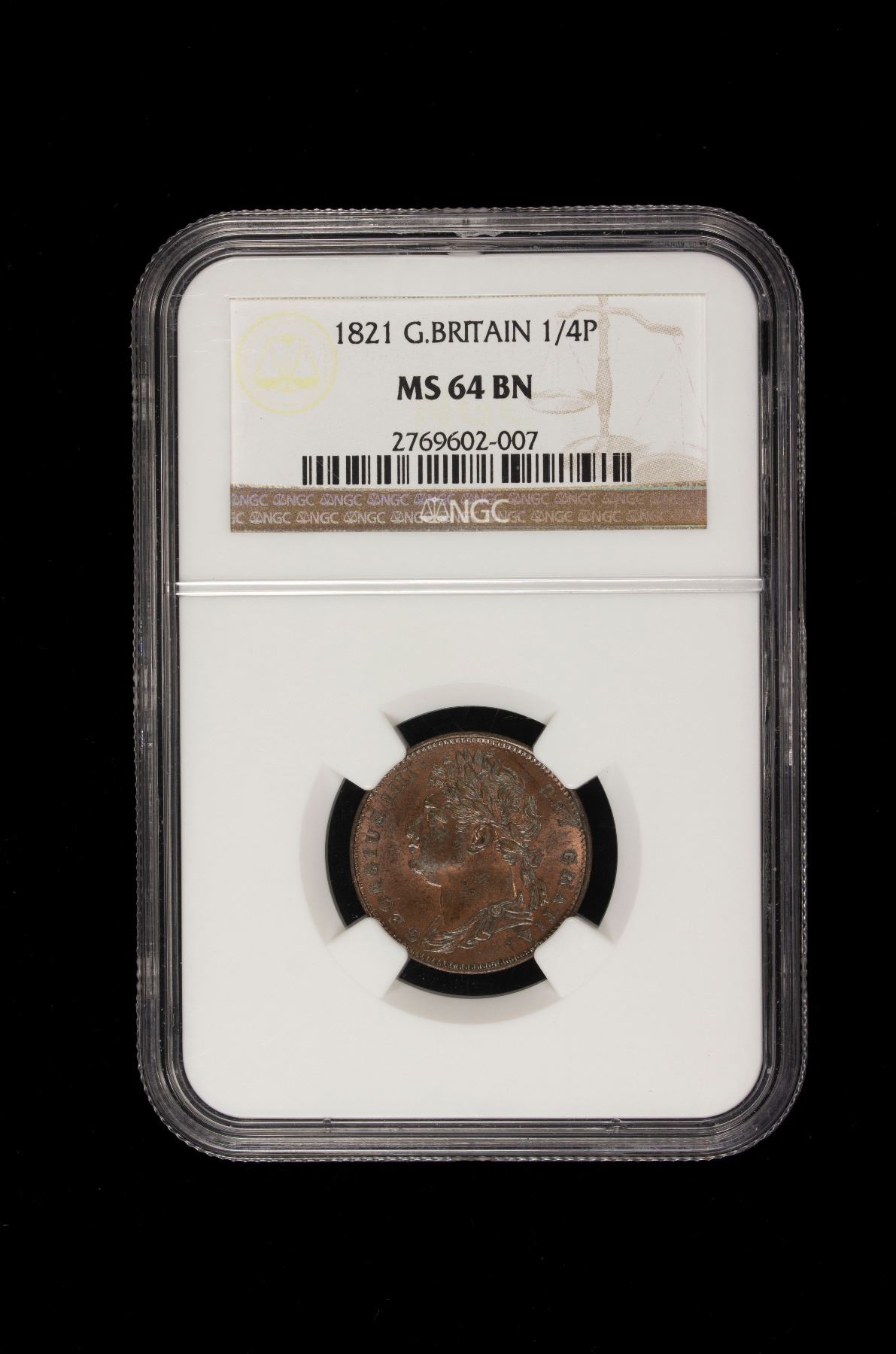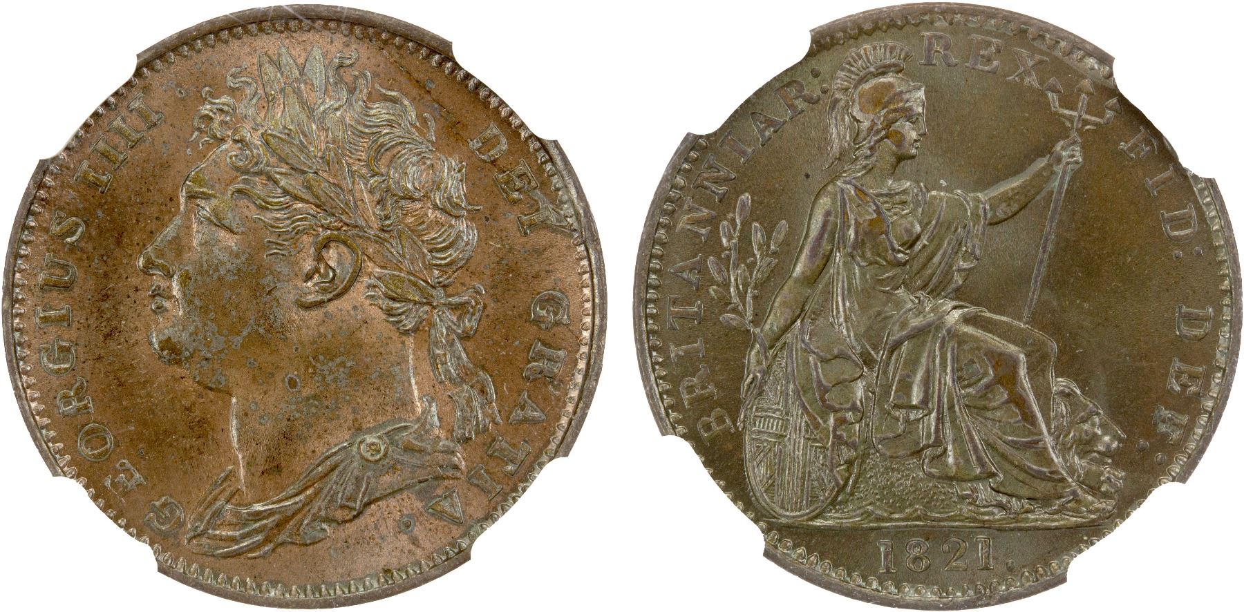 GREAT BRITAIN: George IV, 1820-1830, AE farthing, 1821, NGC MS64 BN