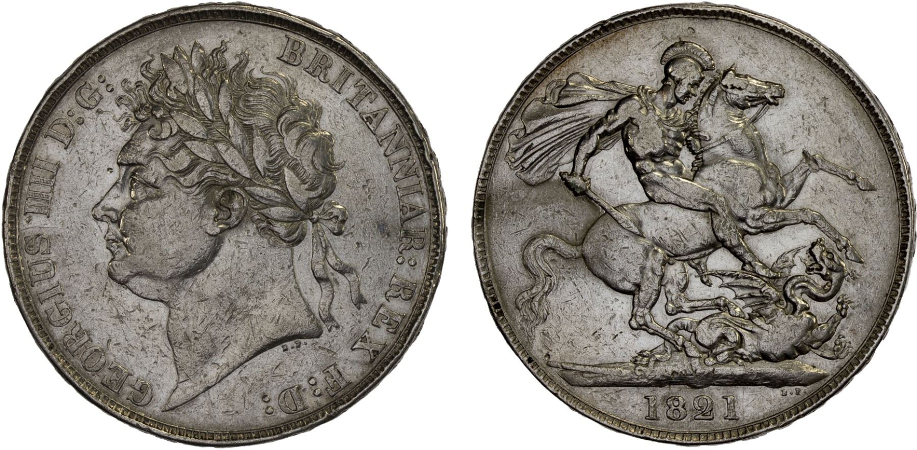 GREAT BRITAIN: George IV, 1820-1830, AR crown, 1821, VF-XF