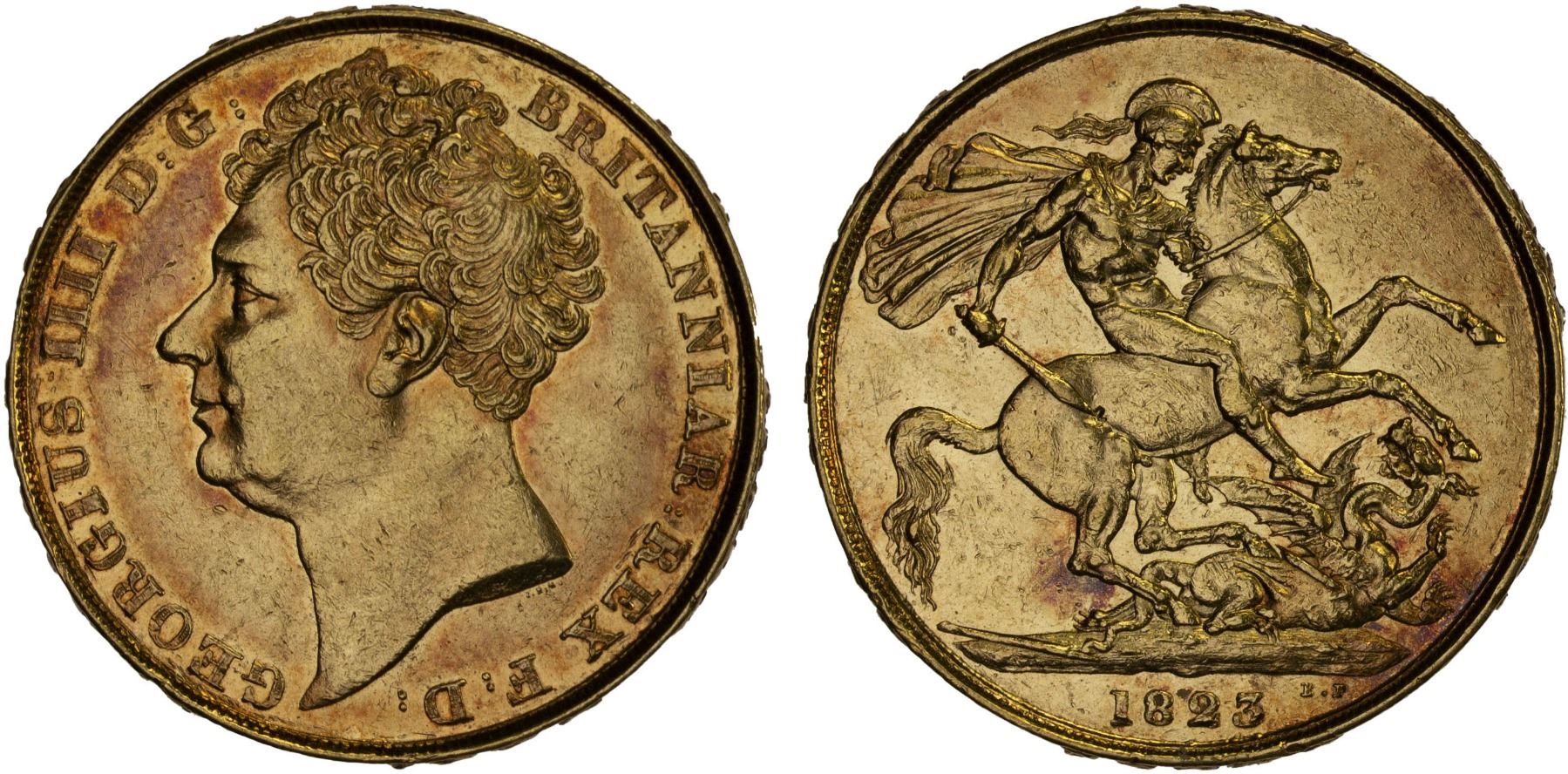GREAT BRITAIN: George IV, 1820-1830, AV 2 pounds, 1823, XF-AU