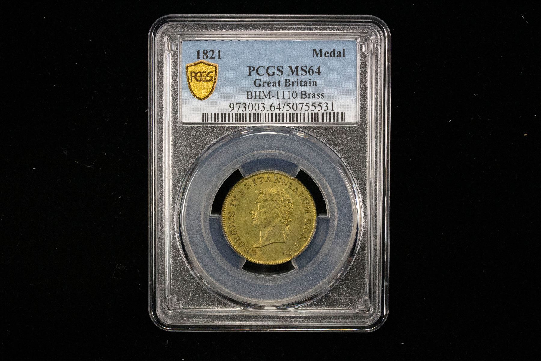GREAT BRITAIN: George IV, 1820-1830, brass medalet, 1821, PCGS MS64