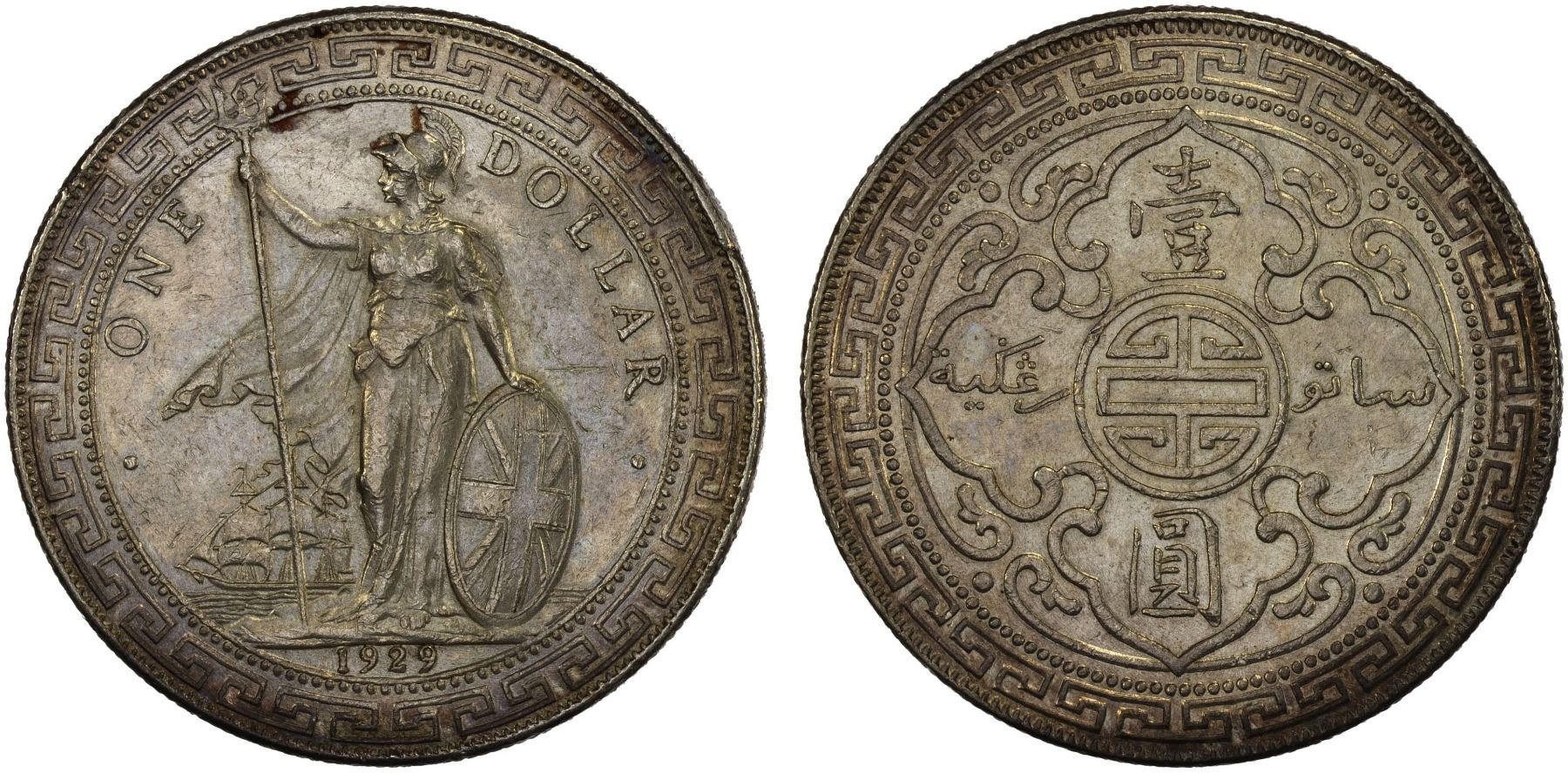 GREAT BRITAIN: George V, 1901-1936, AR trade dollar, Bombay, 1929-B, KM-T5, lightly cleaned, starting to retone, XF.