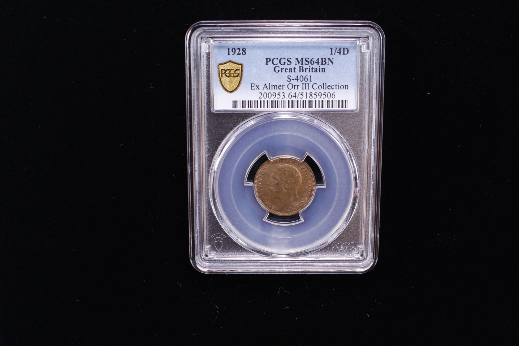 GREAT BRITAIN: George V, 1910-1936, AE farthing, 1928, KM-825, S-4061, a wonderful example, PCGS graded MS64 BN, ex Almer H. Orr III Collection.