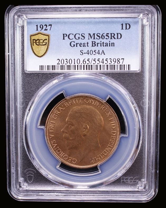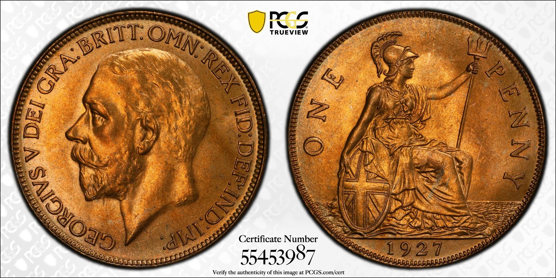 GREAT BRITAIN: George V, 1910-1936, AE penny, 1927, PCGS MS65 RD
