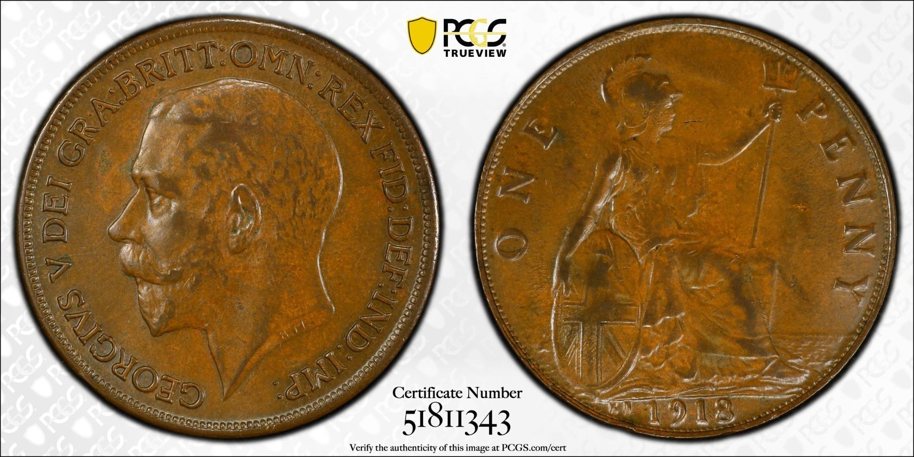 GREAT BRITAIN: George V, 1911-1936, 1918-KN, 1918-KN, PCGS AU58